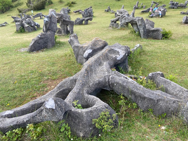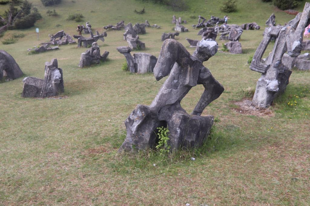 In this large field, there are 78 larger-than-life sculptures that are unrecognizable from a far. I thought for a minute that they are dinosaur bones, or fossils since this place is the barren Jura landscape. Most of them looks like they crouch, rear up and crawl and on struggling state. Individual figures first point the way into the hollow, where the figures come together to form a bizarrely frozen battlefield. This makes me wonder how this place looks like in Winter. I have read that the Artist, Alois Wunsch-Mitterecker worked on these figures made of Portland cement, granite and basalt grains for over 20 years. He himself never saw the completion of the work, he died before it was finished.The figures were erected according to his plans only after his death (December 1975) in the years 1976-1979. Come to think that the field is still unfinished.