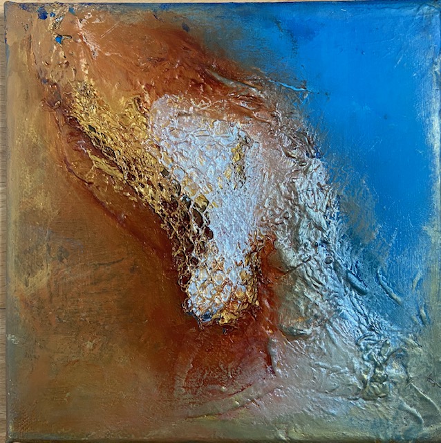At first I tried only a small cut piece of net and pasted it with modling paste and paints, I waited for it to dry then I started to create layers. I saw that it creates a nice effect on the canvas with all the other layering and textures that I incorporate using paste and Gesso so I continued. I find it so wonderful that I got carried away, then I decided to create a series of paintings! Then that paved way for my series called InfinityNets!