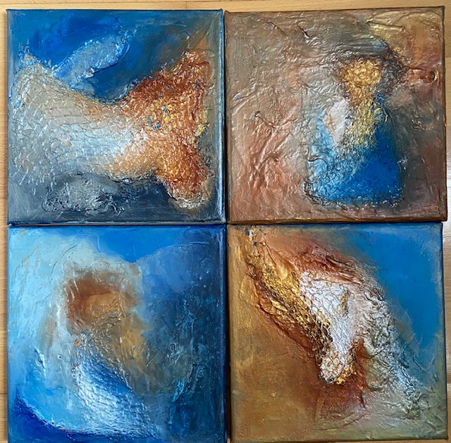 Speaking of creating, I´ve been experimenting a lot with my artwork nowadays, testing new techniques and mediums. I am working a lot with Acrylic nowadays, I do mostly Abstract paintings but this time I am using Nets as as added texture medium. Yes, you heard it right, I am using nets from the packages of onions, garlic and lemons that I buy especially during Corona times. I developed a habit of drinking warm lemonade with ginger every morning so I tell you, I have lots of nets in my kitchen.Bow I have found another worthwhile use for them instead of throwing them in the trash.When life gives you lemons, create a painting inspired by it, as they say.It came true to me at least…