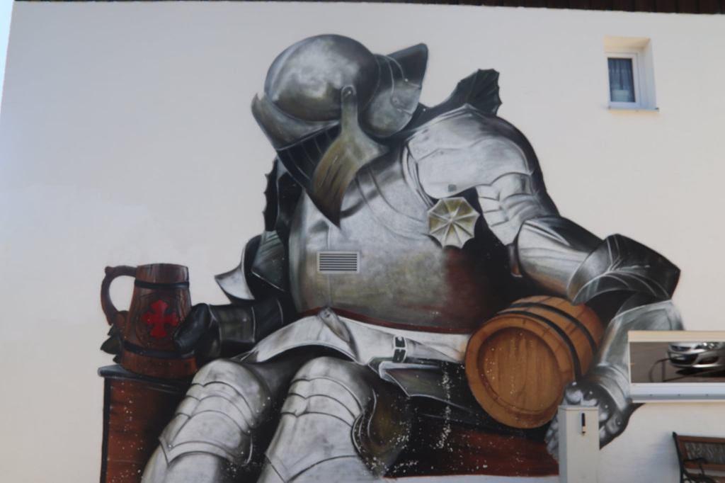 A Ritter Sculpture out of wood inside the ruins of Burg Randeck
