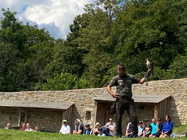 Falcon show in the outer courtyard of the castle. the show is offered 2 x a day and is suitable for all ages.