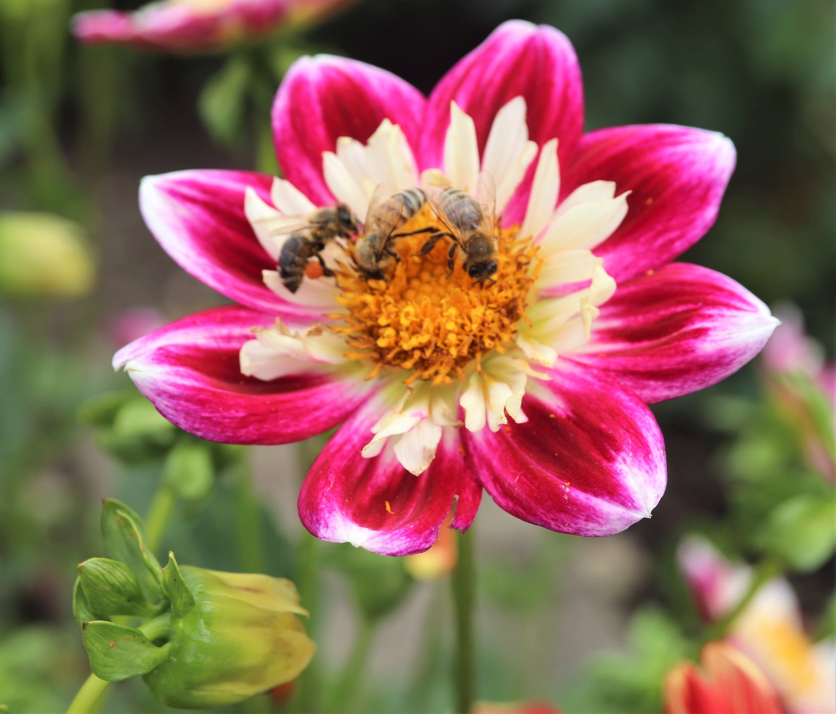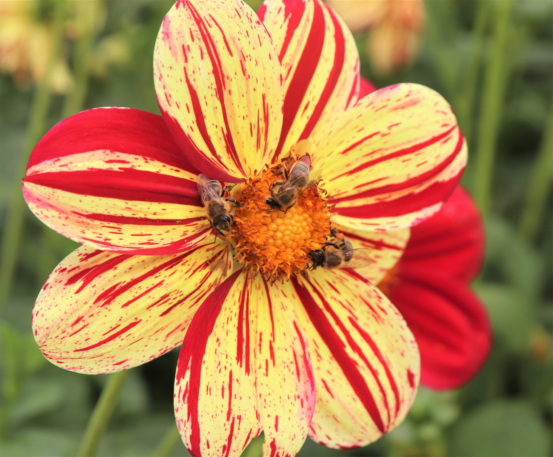 I feasted my eyes on the beautiful landscape. The garden is beautifully adorned with different plants.It has the late summer blooms that makes it so alive and refreshing. I felt that the air there is really clean and the only sound we hear is the water splashes and buzzing of the bees.I get busied taking phoos of bees feeding on lovely flowers. I am kinda magnetized on these sights so I took plenty of shots capturing this beautiful partnership in nature.
