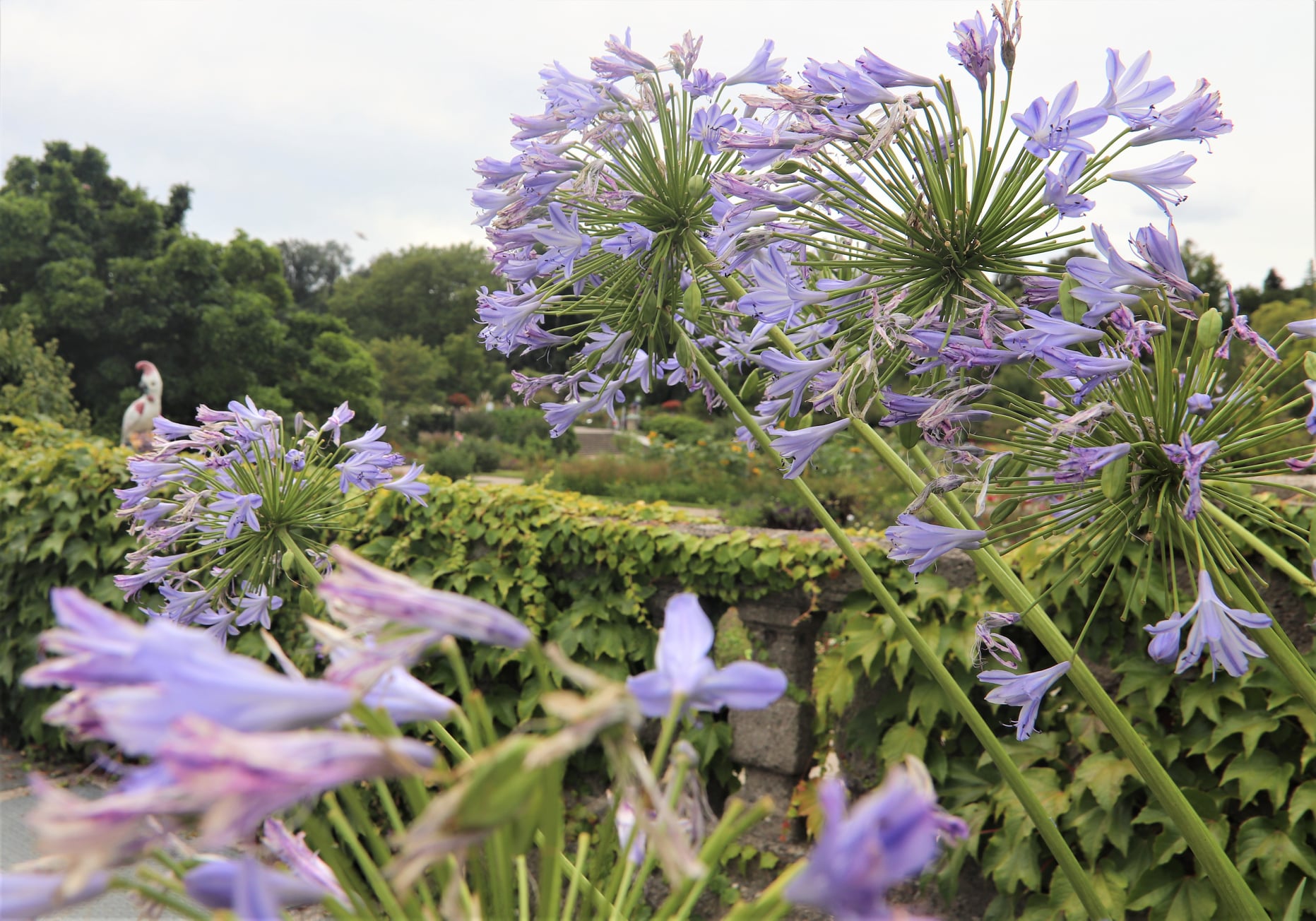 The Iris Garden is also something! Facing the grand pond with waterlilies and more Dahlias and Zinias, this place is quite captivating.Green and light blue shades of Iris are so soothing.There are many Parrot sculptures spread across the Garden.I really don´t know the meaning of its symbolic meaning but then it adds grace to the garden.