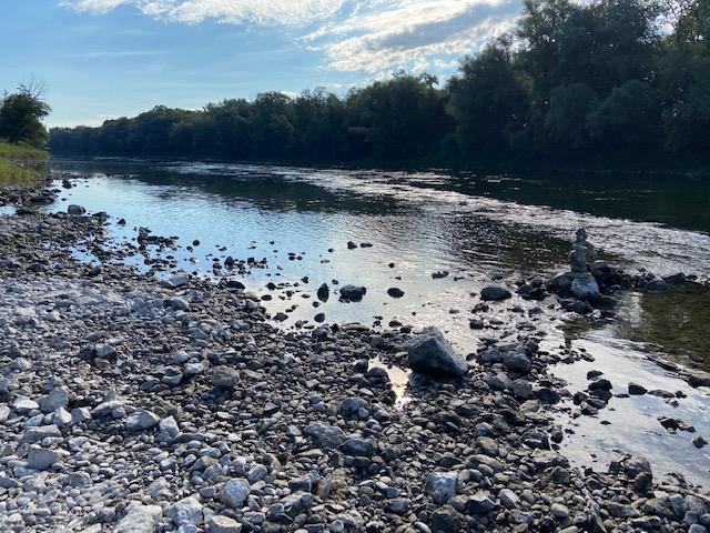 On the banks of the calm splashing waters, there is it…. the field of stone stacks…small, medium, high, low, large, and proud.