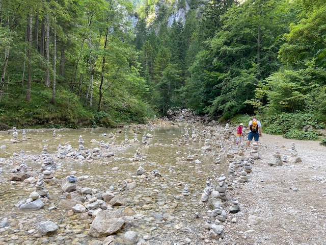 Every single corner of this area was covered with stone stacking.Of course we didn´t let this chance go by, we also made our own.I have seen quite the same when we visit the Partnachklamm (Partnach Gorge) in Garmisch-Partenkirchen. People stops by to admire them, but only those wild at heart build them.