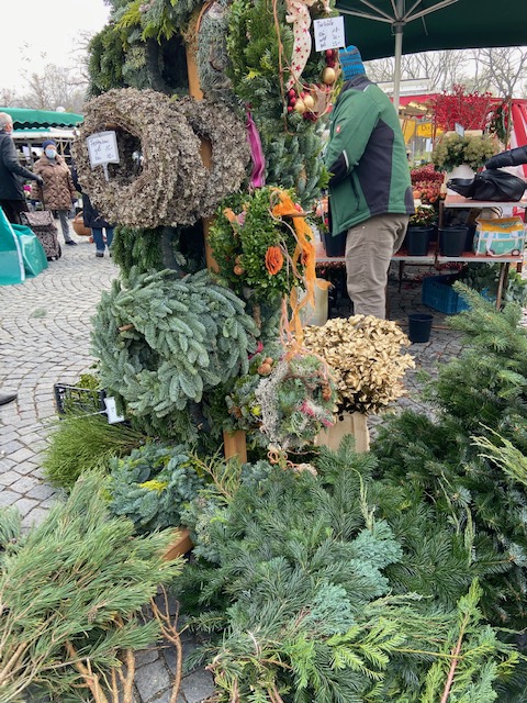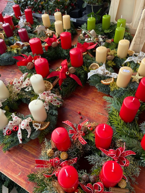 On the other side, when it comes to “Weihnachten” or Christmas here in Germany, Wreaths or Adventkranz holds a different meaning. A Pastor named Johann Hinrich Wichern (1808-1881) thought of something for the children and teenagers without parents in an institution called ” Rauhes Haus“. To educate and teach them to wait for Christmas, he decorated an old cartwheel with 19 small red candles and 4 large white candles.Everyday during Advent, they lighted the small candles and every Sunday , they lighted the big ones. As time goes by, he started to decorate the wheel with green Fir.Branches of Juniper, firs and mistletoes are said to be symbol of unbroken power of life. In Philippines, we have the same tradition of putting a blessed ” Palaspas” , ( in accordance with Palm Sunday) a branch of a palm tree decorated with flowers hanged on doors to “protect” the household from “harm”.