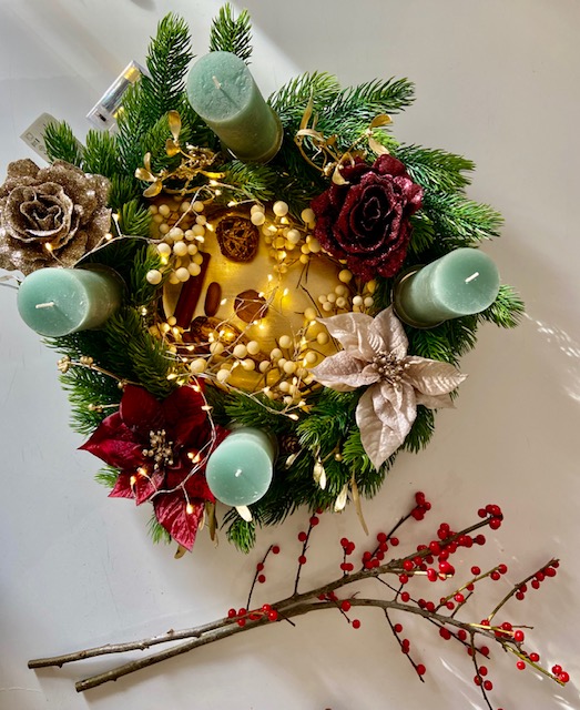 So I decided to made one for myself, another creative DIY Project i said to myself using some materials that I already have with me.Last Saturday I went to our local weekend market and I got a glimpse of natural elements and materials.I love visiting local markets because there are really nice finds there. Look at these Golden mistletoes! They are painted real mistletoes, it costs 5 Euros and the nature wreaths are ranging from 25 – 35 Euros! Yes, they can really be expensive. From shops, they can be more because of those shiny decorations.I thought I made a handmade Adventkranz for myself with recycled materials so I can save more money!