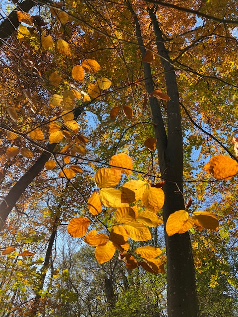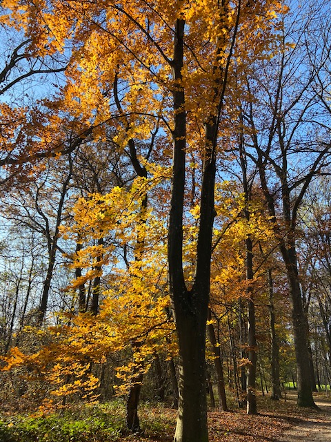 Some trees are already bald, stiff and looked dreary, but some trees hold their leaves tightly, refusing to let go.Against the sunshine they remind me of my Autumn paintings.There is a lot of golden ochre yellows and rusty oranges colors that I see.I am telling you, as a self taught artist, I still find it so difficult to replicate the beauty of nature in landscape paintings.