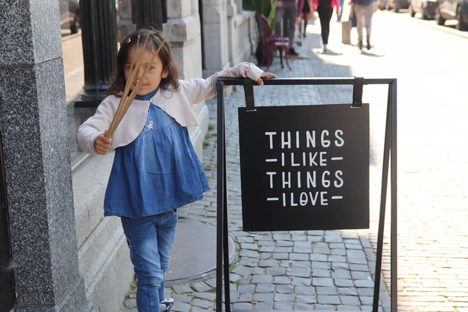The girl enjoying some fun outside in the Cafe Centraal on a fine Dutch Spring!
