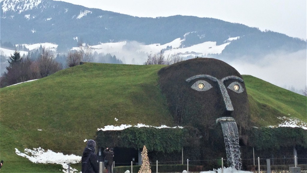 The Giant Fountain is designed by and created in 1995 by world famous Multimedia Austrian Artist Andre´Heller. He envisioned this creation to commemorate Swarovski´s Hundredth Anniversary.The giant head peeks out from a hill with a mouth flowing with gushing waters, which actually serves as the main entrance to the Chambers of Wonders inside the Crystal World. It contains different kinds of beautiful art installations and compositions of world renowned artists.The concept was genius, with bringing out the crystal as the key features.From the Artist imagination, this giant travelled around the world and finally settled in Wattens and brought home all treasures from around the world.