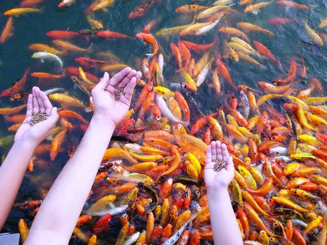The whole sight was really overwhelming in number that it looks scary. Kois are jumping, swirling with their mouths open, gaping, and waiting for fish food. There´s a legion of carp fishes that swarmed into the lake and looking at them is quite exhilarating especially the sound they make.I am just not used to see them in herd like that. Pre Covid, people flock to this place every single day, especially on holidays and weekends just to feed the fishes. It´s really a magnet for kids, and also for adults! It is forbidden to feed the fishes with other types of food, only the one being sold at the ticket entrance.There is a shop that sells fish food so everyone can really enjoy the experience of feeding the hungry Kois.