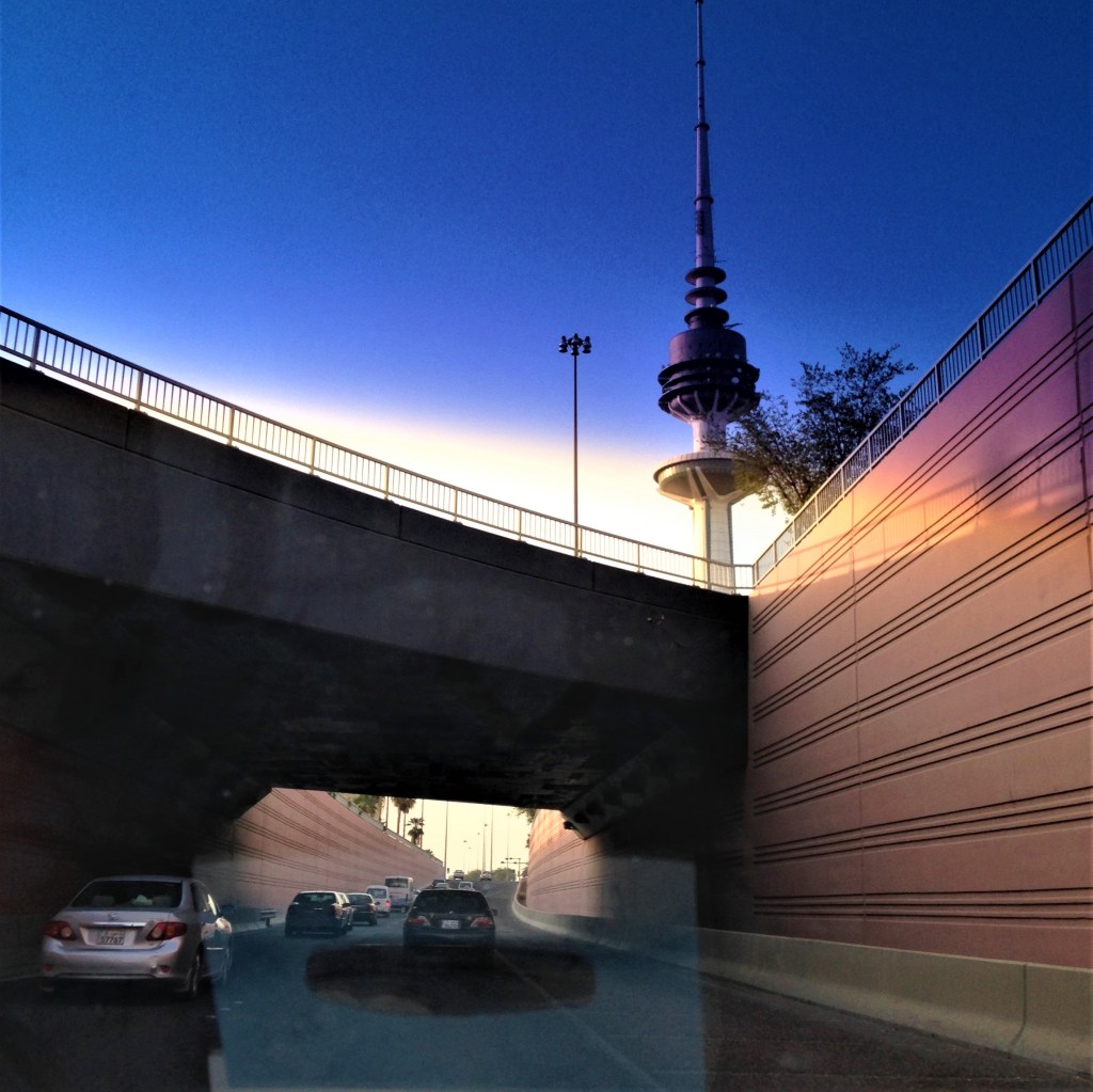 A very busy road going to Kuwait City heading to the Liberation Tower