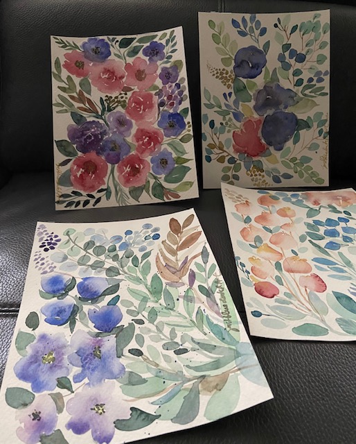 Lately I haven´t painted these types since I am caught up with work.Through the numerous lockdowns we´ve had here in Germany, I have sent so many cards to freinds and family sending warm wishes and even just a form of saying Hello.When I looked at these bunch of flowers, they remind me so much of simple pleasures of life. Women adores flowers no matter how big their garden is. A bouquet of flowers given to them would always make them smile and be touched. It´s a classic way of saying ” I do care” and I have thought about you..”