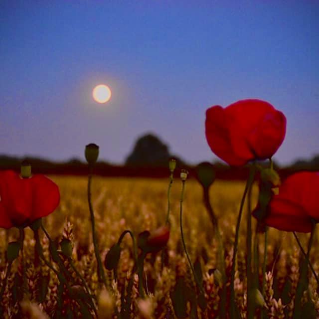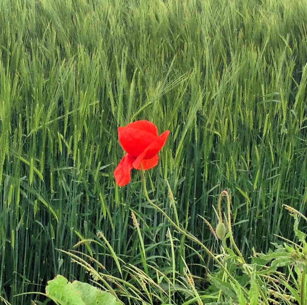 A single Poppy flower among the green wheat crops and a lovely sight of Wheat Florets. (Wheat fields in Bavaria/Justbluedutch)