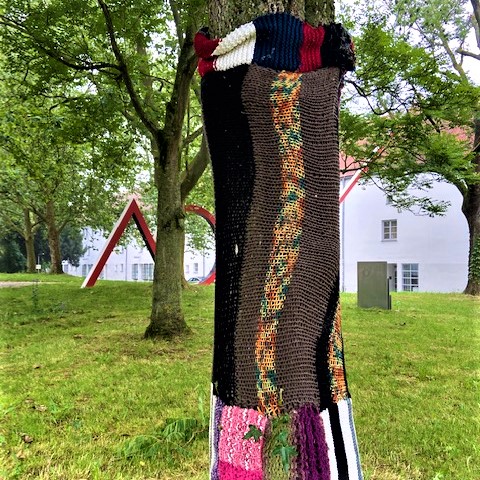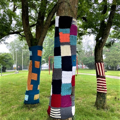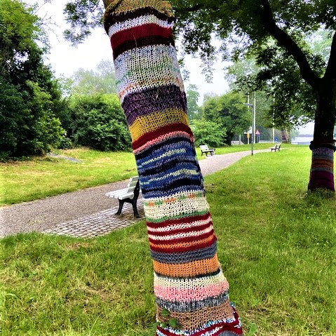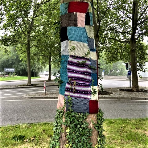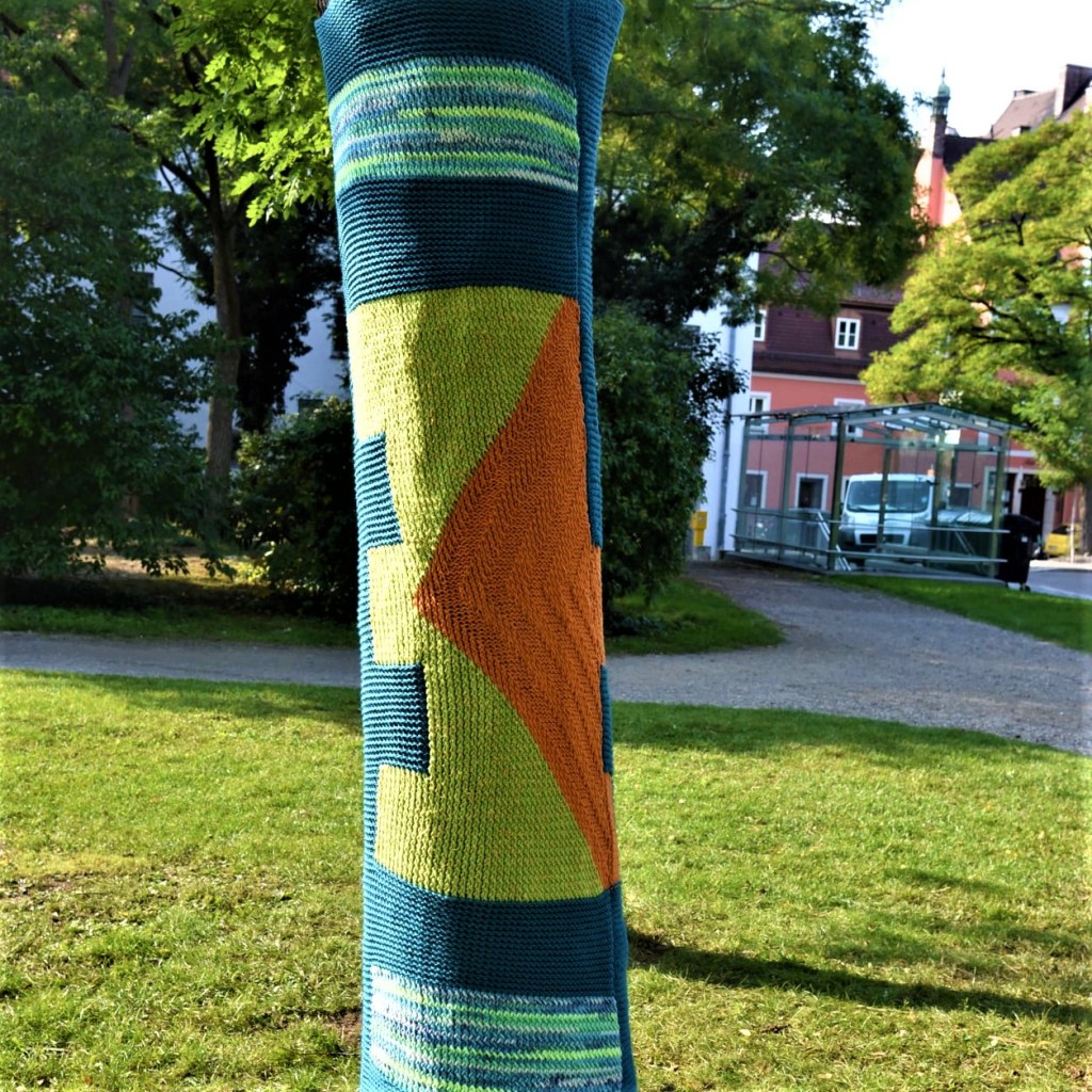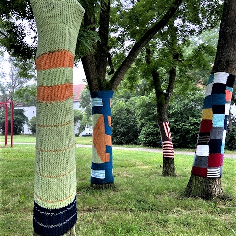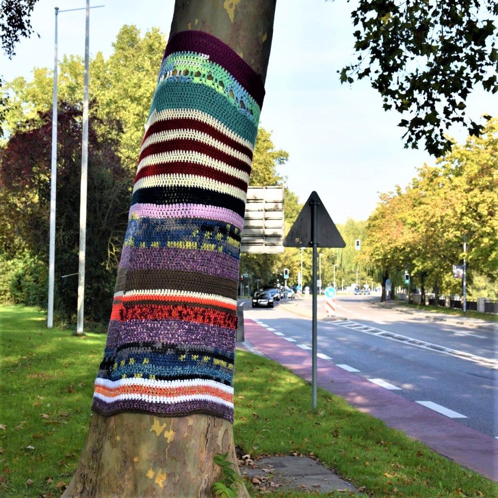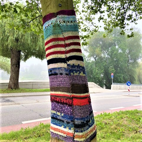 Over here in Bavaria,the initiative of Tree yarn bombing in my city was presented by the Free Voters organization and local community to express their form of protest against clearing of the trees, preservation of the small city park and building of a Kammerspiele.The focus of the consideration is something to do with the renovation of the City Theater and better consideration for the artists.
