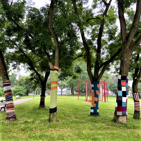 6. I’ve never seen yarn bombing. That is so fun. I don’t know if it would harm the tree. They should include buttons, so they can be removed, I suppose. It’s very colorful, though. Thanks for sharing this.
