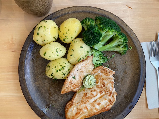 Chicken breast slices with salad is actually my favourite to eat in restaurants.