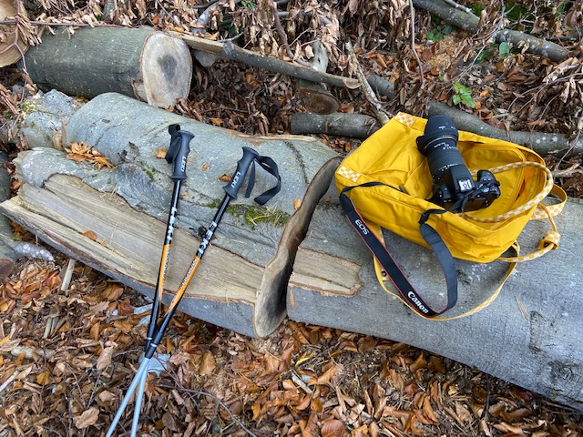 The first part of the hike was almost flat. We hear the sound of the gushing water in the small brook that flows from the forest into the side street of the village.We parked our car in the foot of the village and the small path led us to right into the woods. From the beginning, I h It was a quiet place, and I love adoring the small gardens filled with autumn blooms. I haven´t seen anyone else hiking, or probably they´ve taken another path.There are lots of piled woods and tree branches along the way. That was a smart thing to do, those woods will definitely give warmth during the upcoming cold months.The sights were typical, yellow-orange leaves of the trees gives us a great backdrop but then the soil was damp, muddy and yes, wet from last night´s rain.We didn´t mind that though.