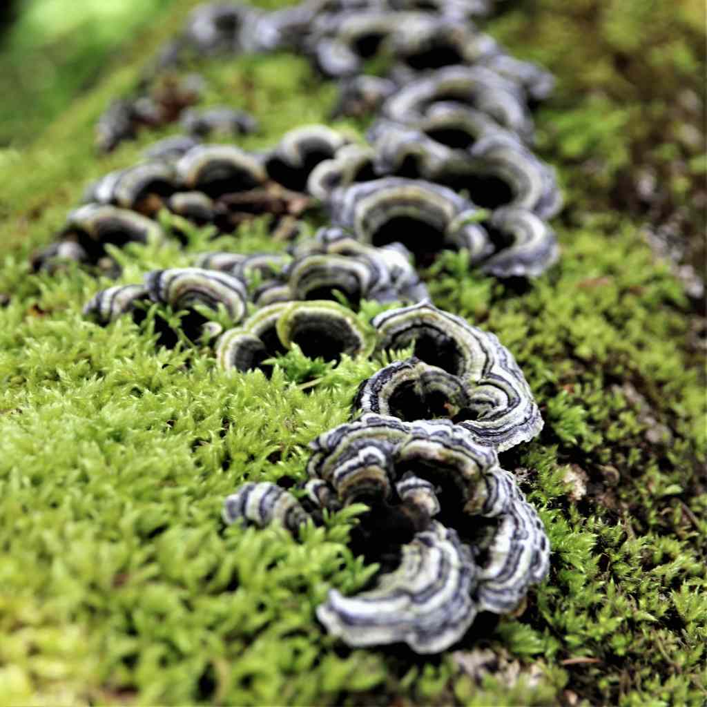 Spotted these rows of Fungi, the color is crazy, but black stints is so fascinating.