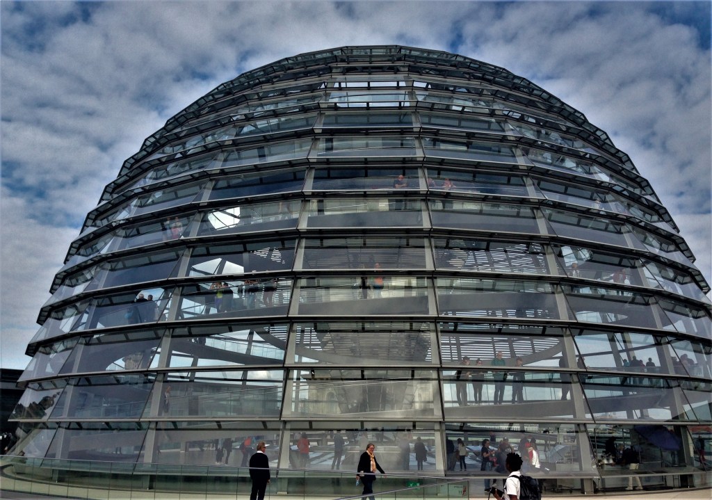I remember taking the tour inside the Berlin´s Reichtag where I saw this modern, domical structure which has a spiral curvilinear stairs inside where people can go up walking through it. The reflection of the curves against the bright sun is amazing.