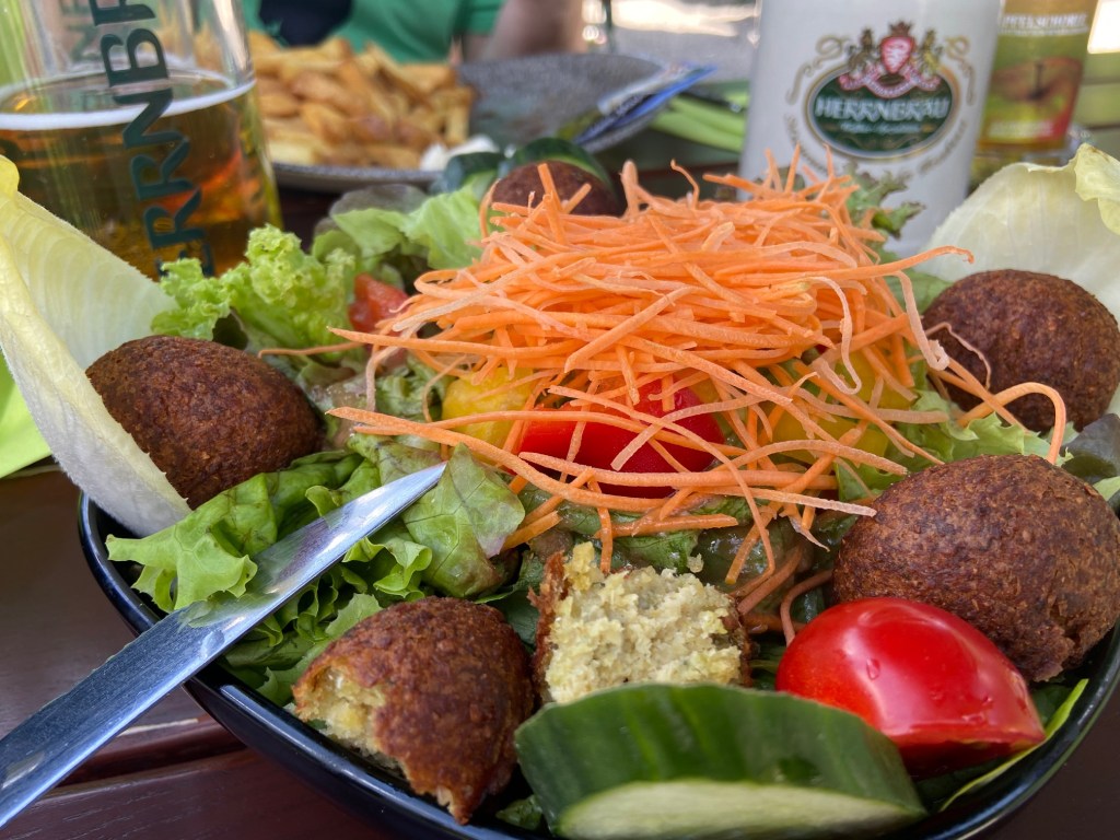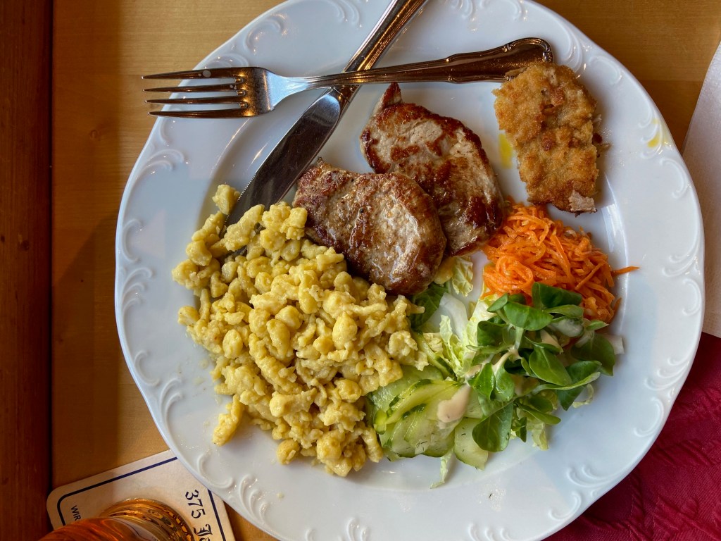 Bavarian restaurants are also called ” Gästehaus“, and most Beergardens have a similar menus. Famous combination is with Bratkartoffel or fried potatoes, there´s also the one with potato salad and french fries. Name it they do potatoes in all their glory! I think I have eaten so much potatoes here than in my previous lifestyle!