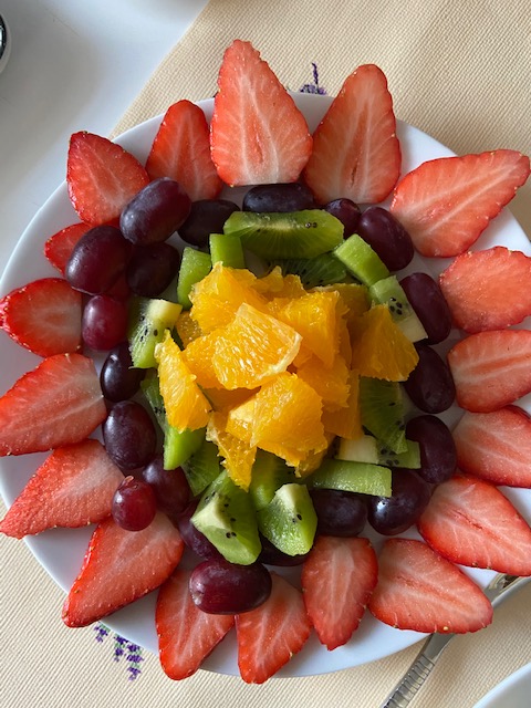 Germans typically eat 3 times a day.Breakfast ( Frühstuck), Lunch (Mittagsessen) and Dinner ( or Abendbrot).Bread is golden here. Almost everyone eat bread anytime of the day, including the delicious pastries .I observed that since they loved shopping at weekend markets to get fresh fruits and veggies. For us, we have fresh baked breads or Brötchen every Sunday.