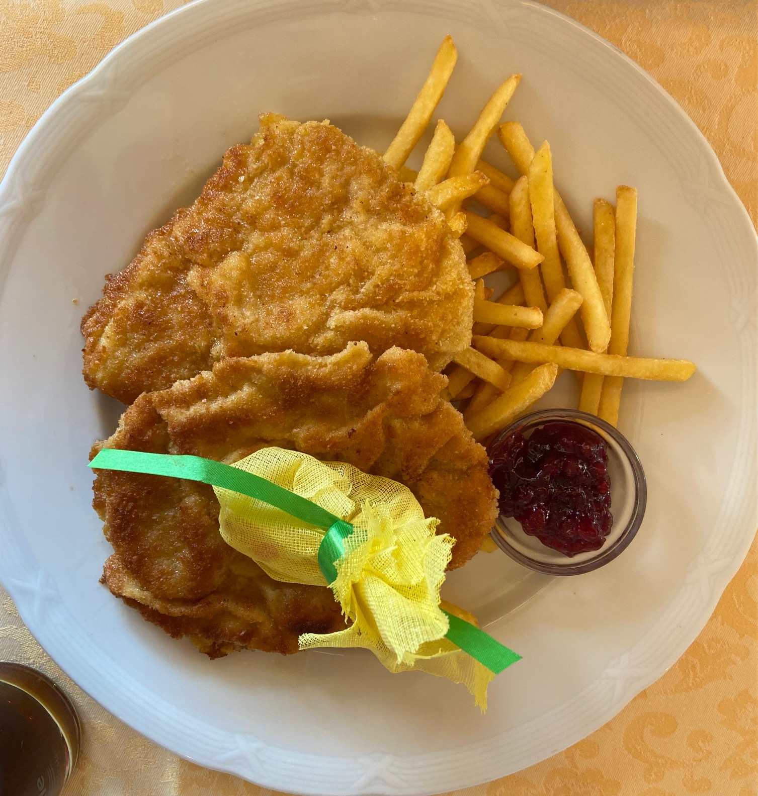 Children´s menu are also available in many restaurants. The normal choices are Currywurst with fries, chicken Nuggets with salad or Kinder Schnitzel with other side dishes. Portions here in Germany are large so I never finished it. I always share my food with my daughter because I hate wasted food.