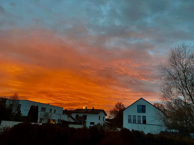 I remember that last Christmas here in Bavaria, we didn´t have snow but we were rewarded with beautiful skies during dusk time.For me, that was unforgettable.While taking a walk when the skies is orange, I can´t afford to be ungrateful.