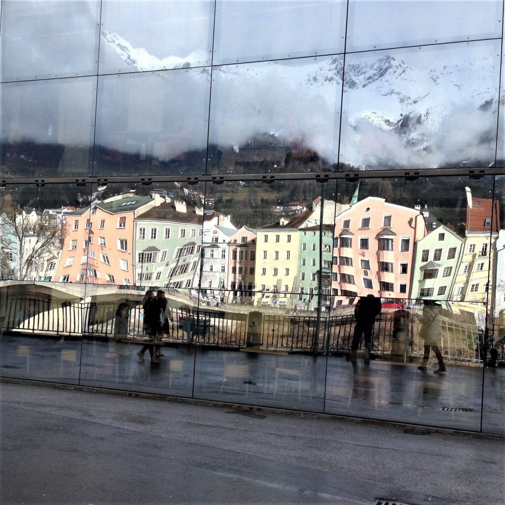 I love the sights of snowcapped mountains but when I saw these mirror reflections of the Nordkette mountains in Innsbrück in Austria, I can´t help but to take a snap out of it.The reflections of the colorful houses along the Inn river is so fascinating.