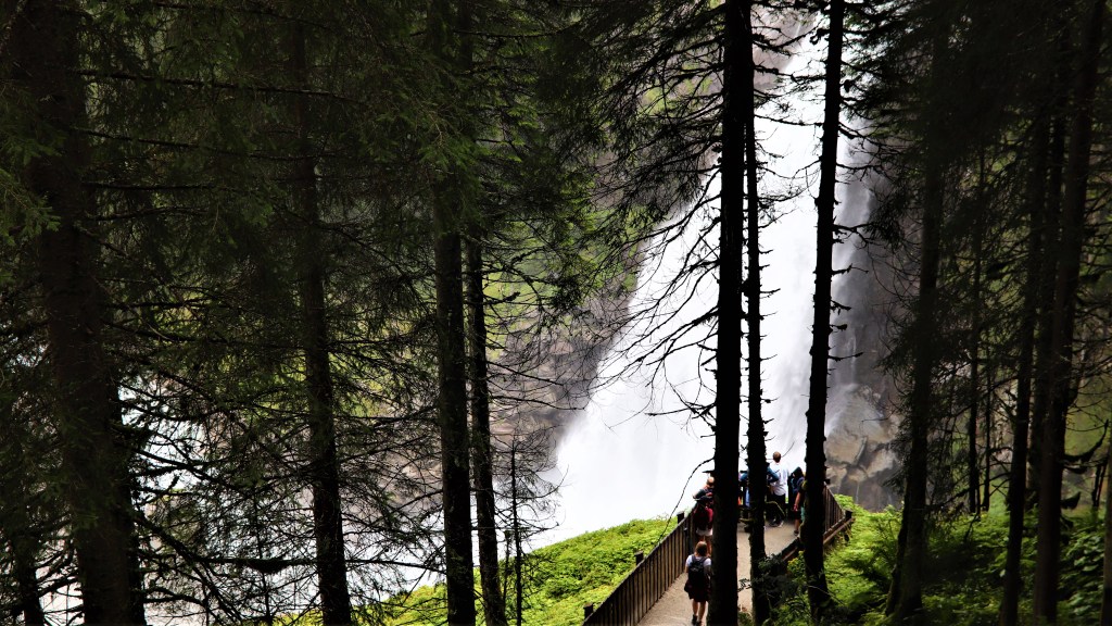 The Krimml Waterfalls (German: Krimmler Wasserfälle), is phenomenal, with a total height of 380 metres (1,247 feet), and are the highest waterfall in Austria. The falls are on the Krimmler Ache river and are located near the village of Krimml in the High Tauern National Park in Salzburg region.This place is so picturesque–so green and lush and the sight of the white water cutting through the rocks and forest is one magnificent view I have ever seen here in Austria.