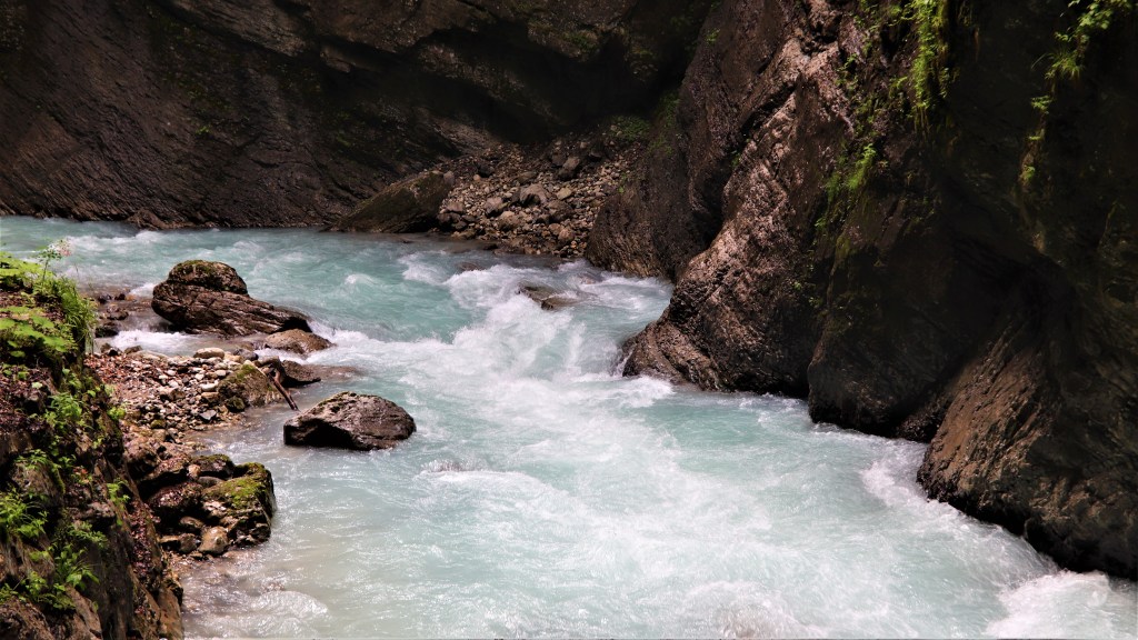 As we walked through the village, we followed the Partnach river. The color of the water is bluish and greenish because of the minerals and sediments it has. The sound of the gushing water has been our sountrack while we do the hike going through this Gorge.The Partnach is fed by meltwaters from the Schneeferner glacier some 1,100 m (3,600 ft) higher up. The glacier’s meltwaters seep into the bedrock and reach the surface again near the source of the Partnach.