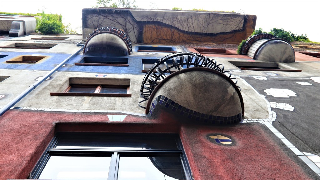 But look at how unique and unusual this place is. The motif and design is quite familiar as it is the forte of Hundertwasser and quite similar to Anton Gaudi. His love for colors and curve lines is really fascinating, making his work carved out from a fantasy world. He avoids shard edges and contours are chiselled out. There is not a single straight line in his buildings.This building was constructed between 1983 and 1985. It was architecturally realized with the collaboration of architect Josef Krawina as co-creator and the planner Peter Pelikan.