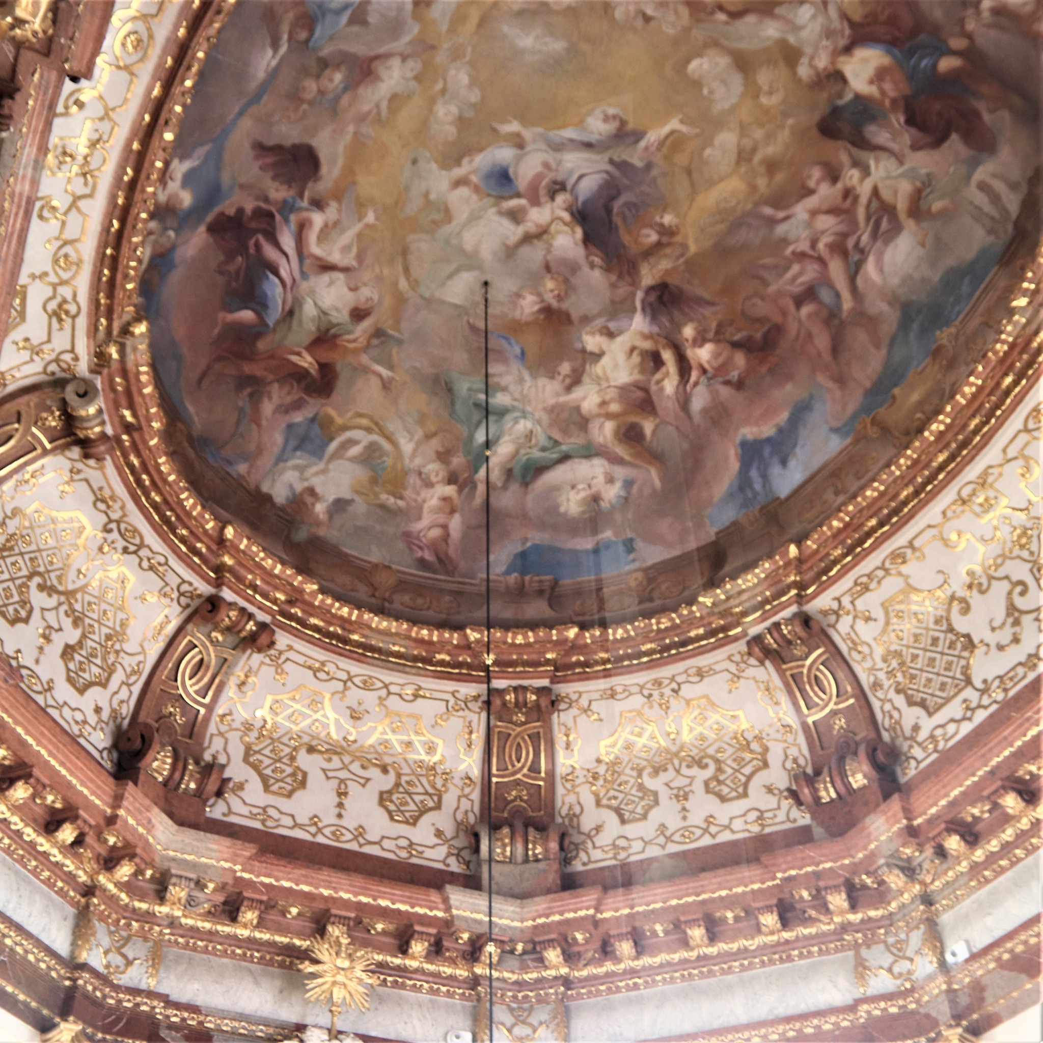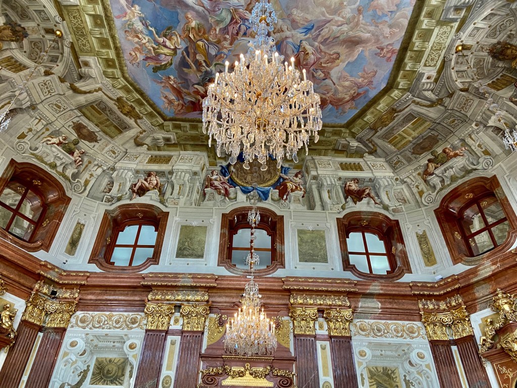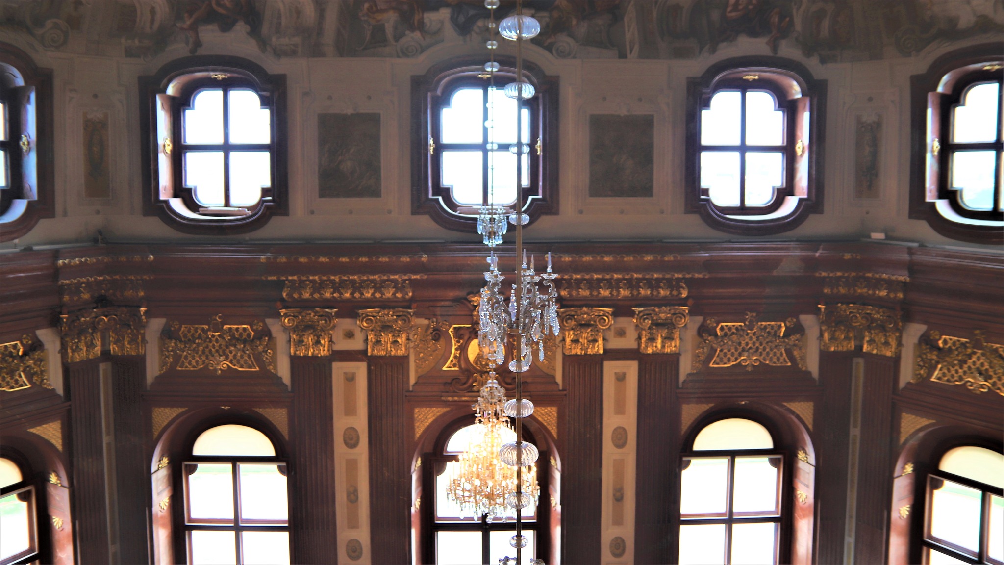The magnificent dome frescoes inside the Marble Hall in Belvedere