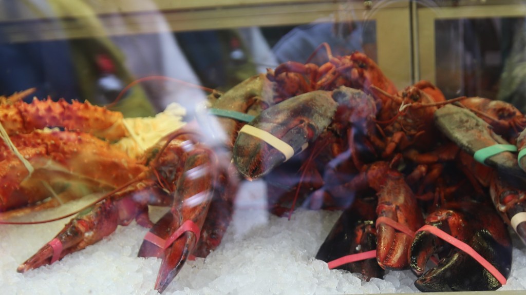 Large array of seafoods being sold in Nachmarkt in Vienna