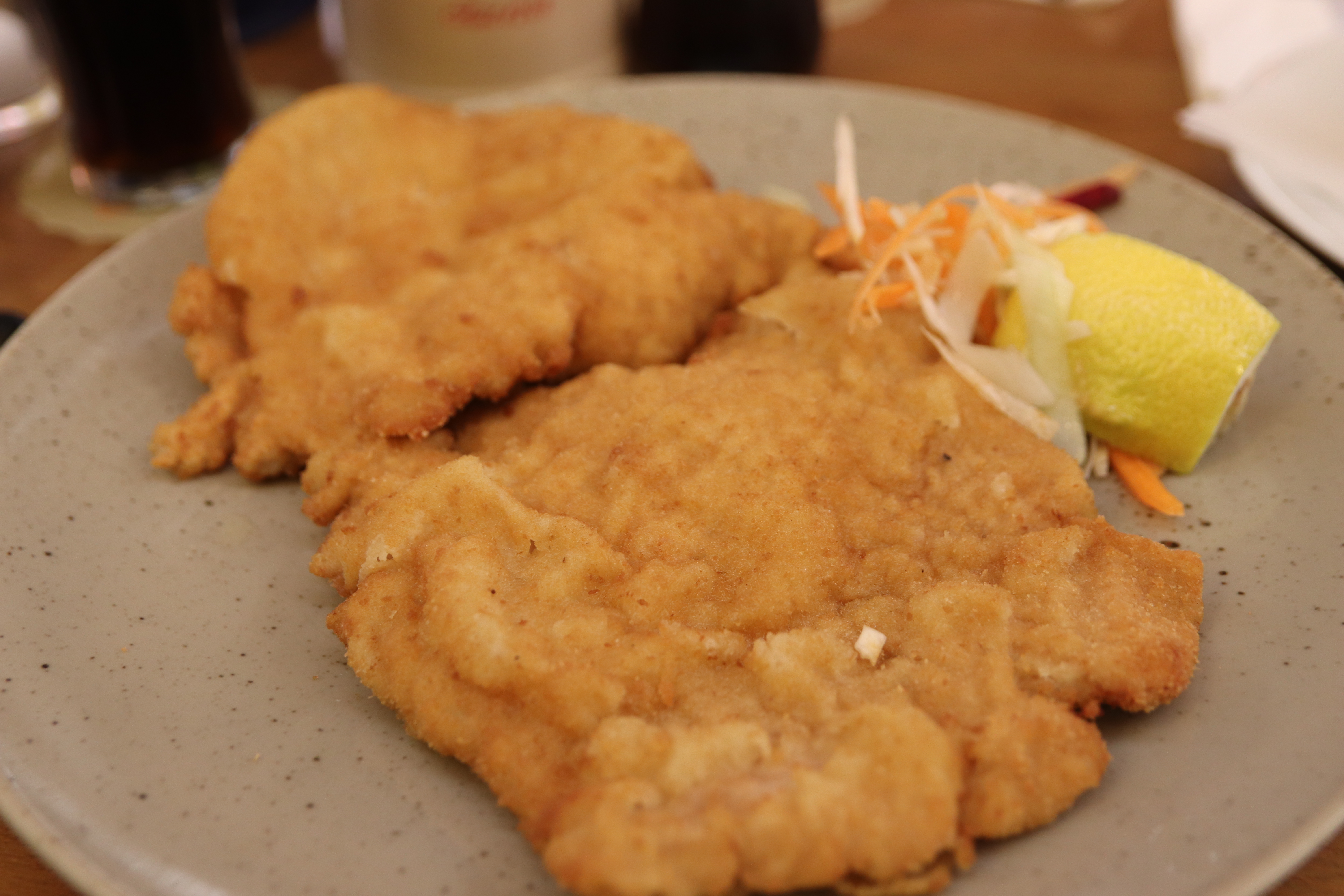 Probably because we waited too long to be seated so we finished all our schnitzels. It was really good, tastey and I wanted to linger more there since the restaurant is really nice.But then it was time for us to go again. In this place, you can eat Schnitzel with their own selection of wines and beers, but it´s too early for us to drink alcohol.It was a great experience though and the place is so spacious, elegant and the staff are clad in a very professional attire. The bathrooms are super nice and clean.People don´t mind lining up waiting outside and I guess it´s really famous and worth the price.