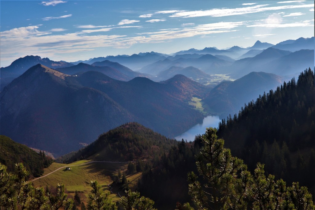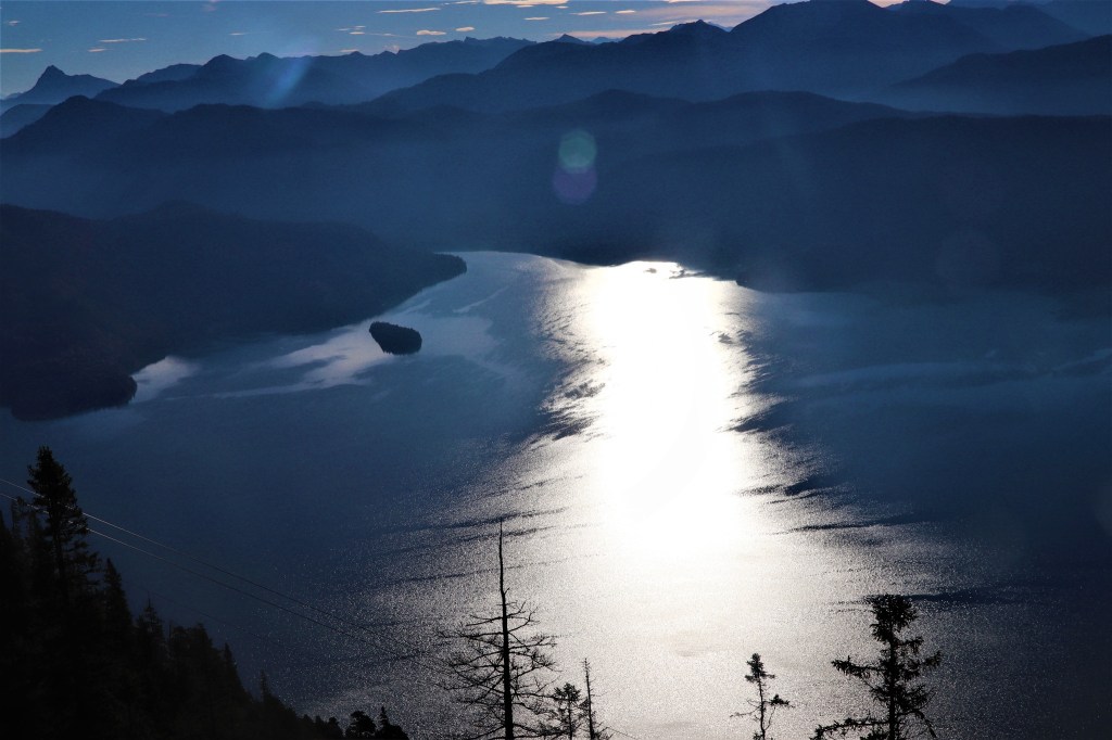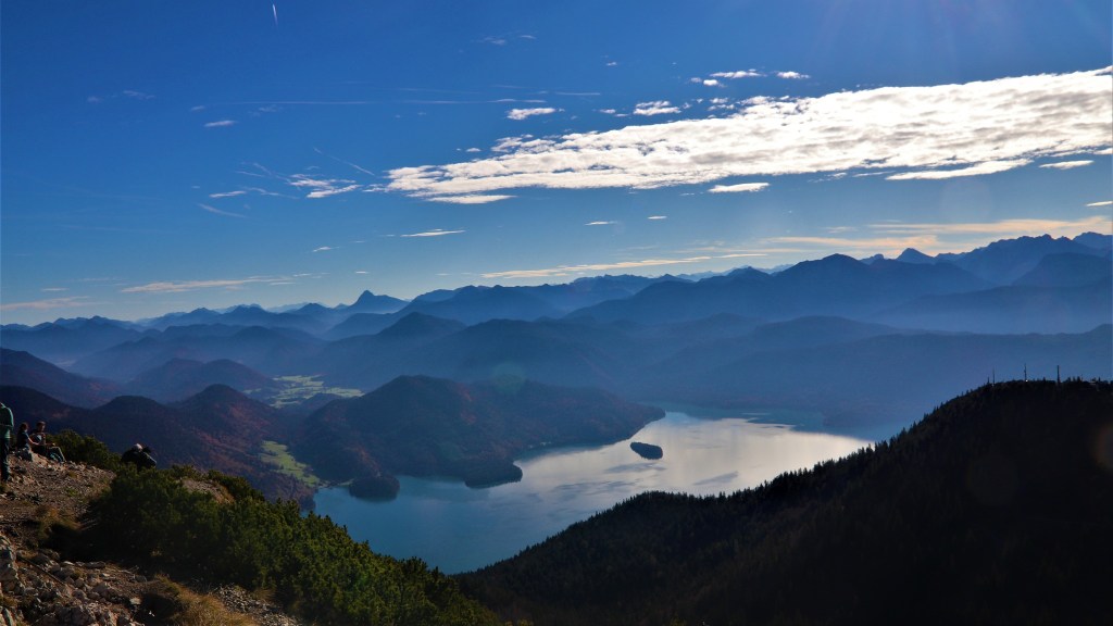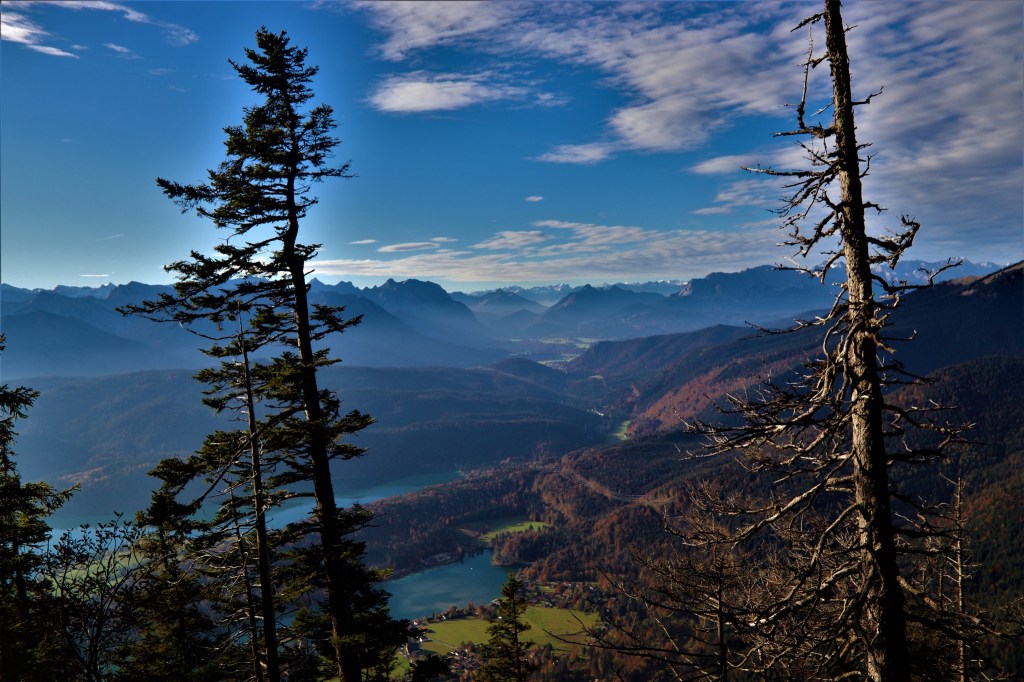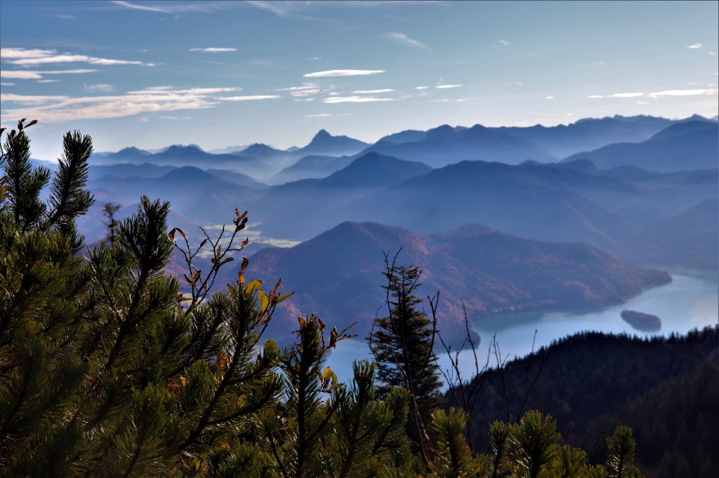View from above Herzogstand, with the views of the carribean hues of Walchensee and Kochelsee