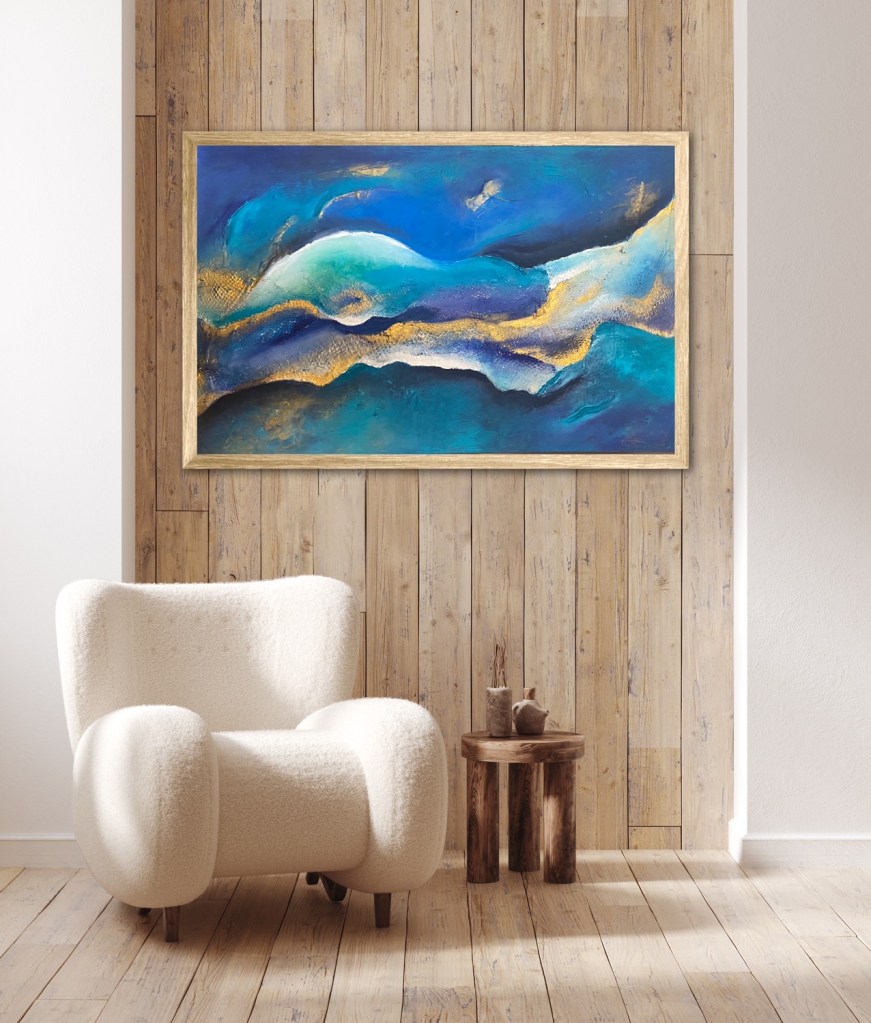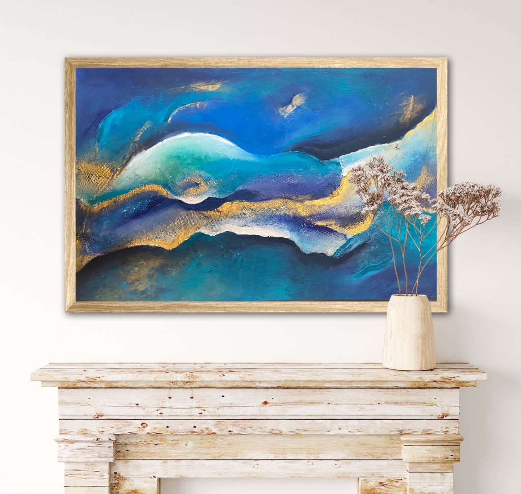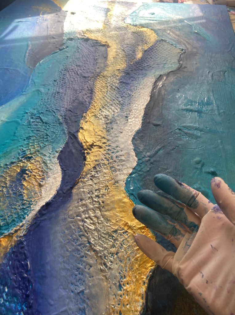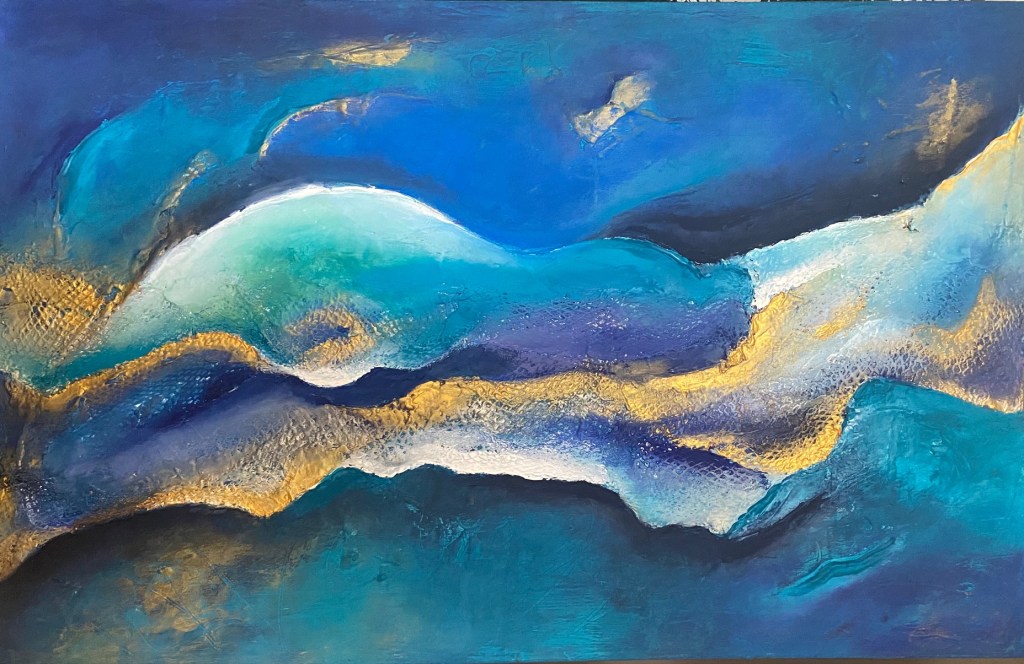I used this inspiration in my last Artwork. It´s called “ Blue Concourse“. It´s blue and Turkis dominated abstract textured acrylic painting which is included in my Infinity-Nets series. It took a long time to do this but I was totally happy with it.Inspired by textures, looking at the ripples and peaks reminded me so much and brings me back again to that special place.
