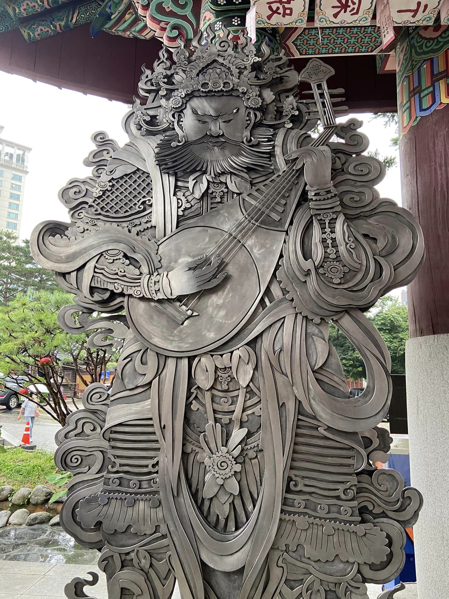 The first thing that greets us when we arrive, aside from the rain, lots of lotus plants in pots and lanterns is the One Pillar Gate with four heavenly guardians of Buddhism.The happy Buddha is loved by my kid so it gave us a happy vibe the moment we enter the temple. I´ve read that they protect 4 points of the directions-(the east, west, north, and south) and also Buddhists. Unlikely ordinary temples are wooden ones, in here in Jogyesa you’ll see iron ones, which is very unique.Because it´s raining hard, most of my photos are taken using only my iPhone.Too bad…