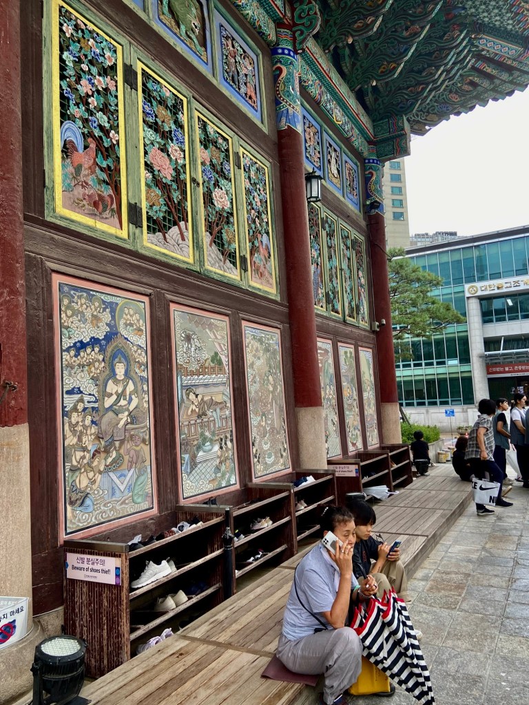 This is my personal travel blog diaries so I can only share about what I have seen as a visitor. The whole new culture experience is new to me and we were all curious about Buddhism and traditional culture of Korea. As usual, the most common attributes that I´ve seen in these temples are – the Statues of the sacred Buddha, their prayer halls, the lanterns and abundance of lotus flowers. I see them quite so often in Seoul!The evident “Bali bali culture” of Koreans- which means always in a hurry is seen everywhere.But then amidst of a busy day, people stop by to have a moment of refuge in this temple.