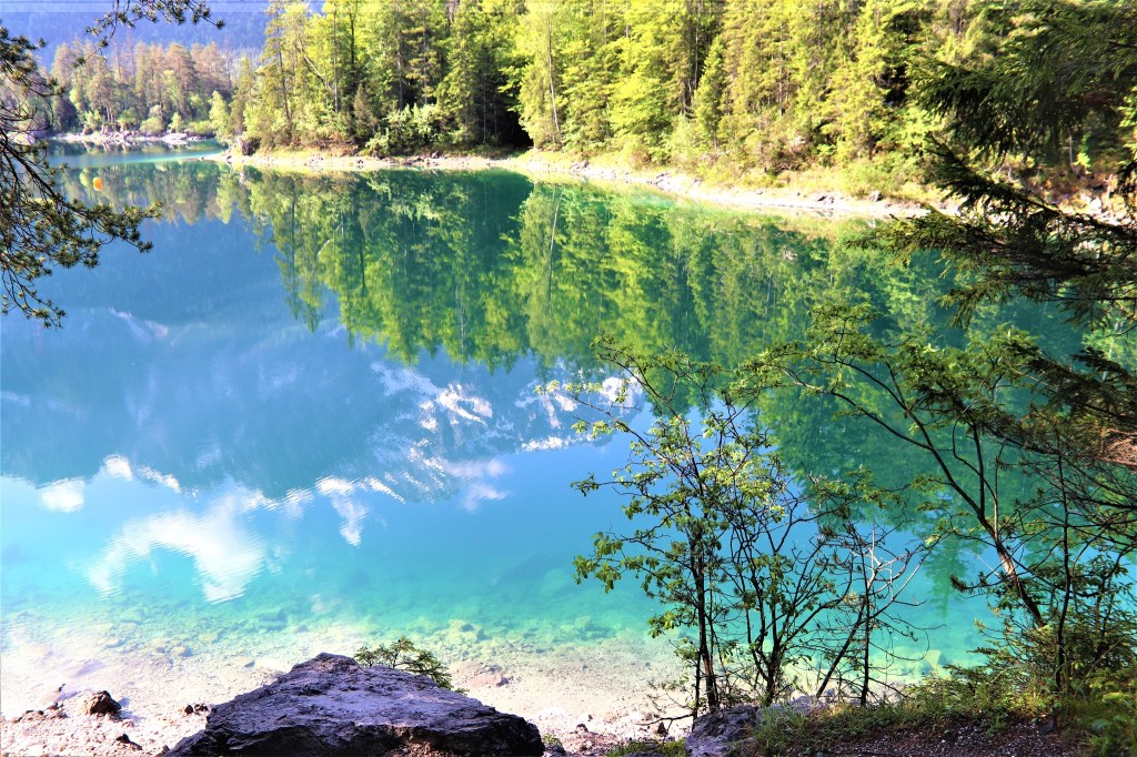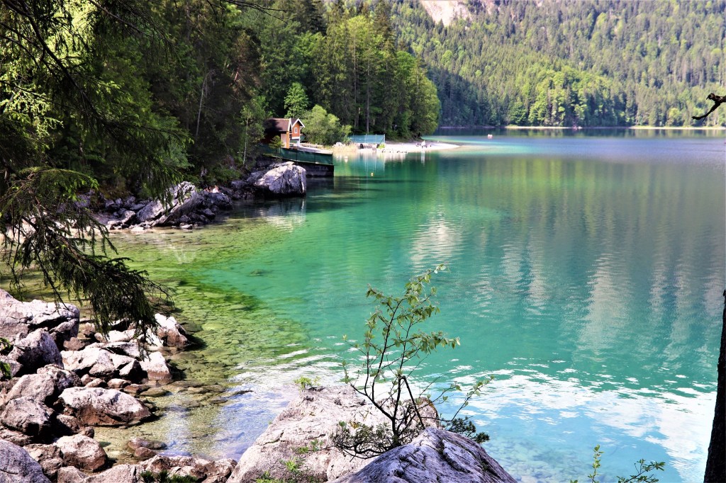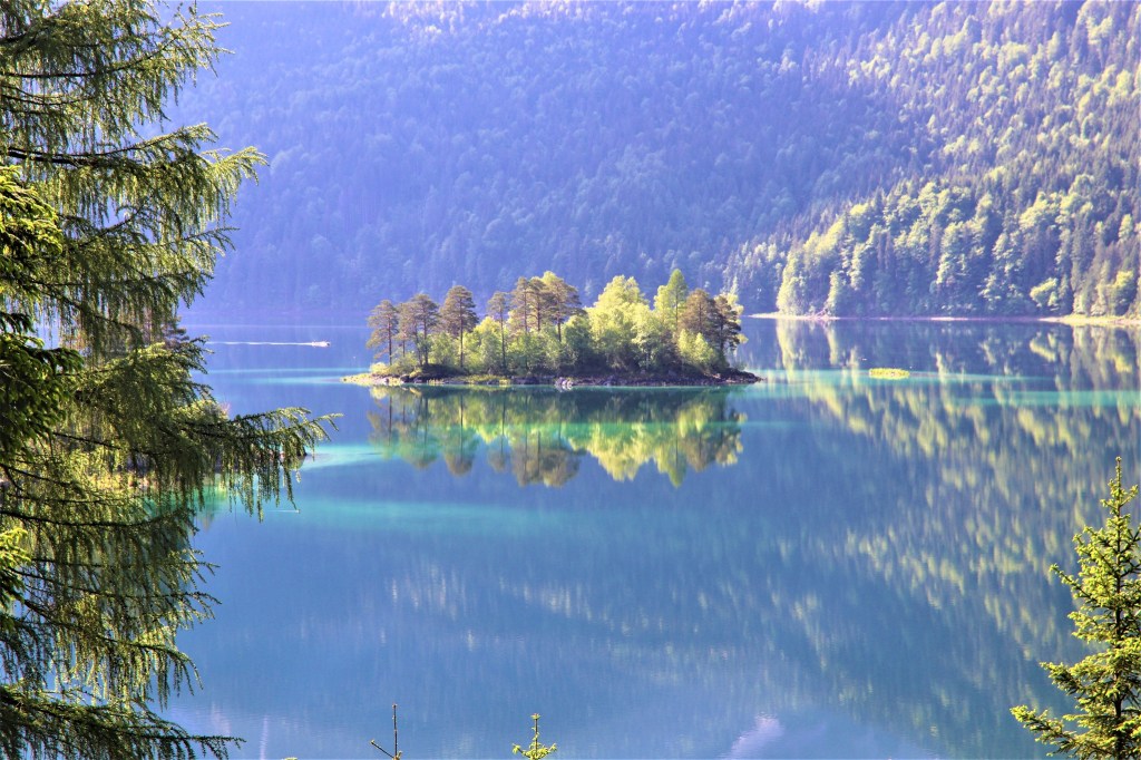 This place in the foot of the Zugspitze, the tallest peak in Germany is my new favourite. I was not completely over with the somber beauty of Königsee, the king of all lakes in Bavaria, but then yes, I discovered another alpine lake, probably hailed as the most beautiful lake in Bavaria, the Eibsee.Adding to it´s beauty is its idyllic location–a mountain lake at the foot of the Alps!