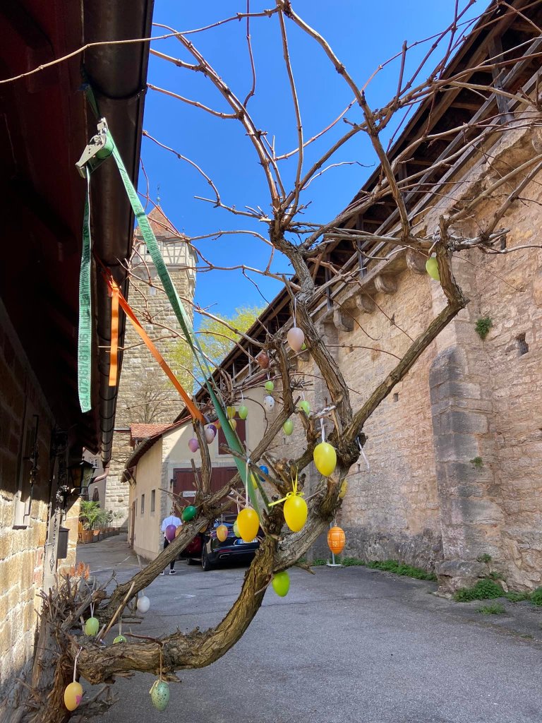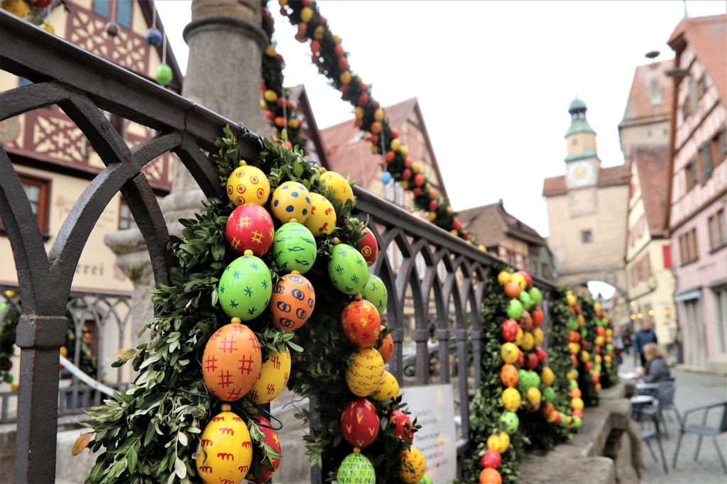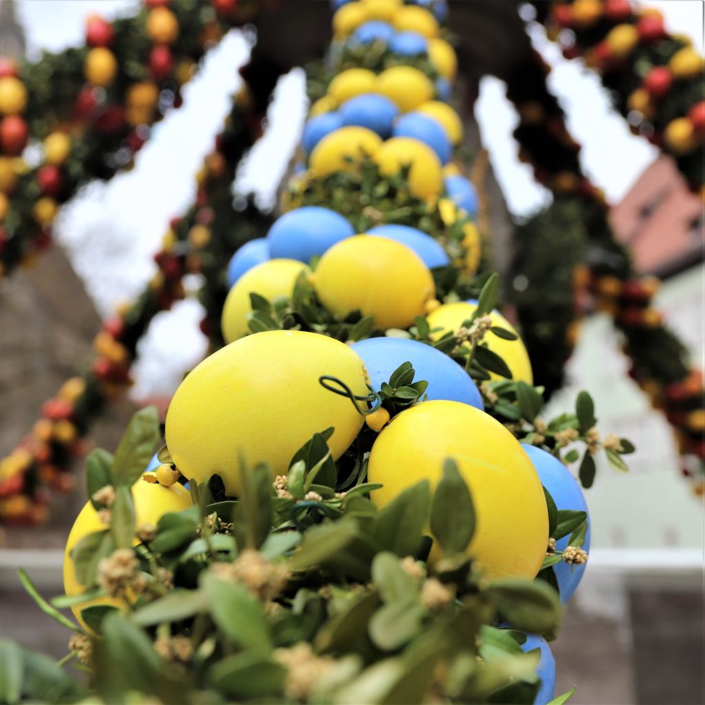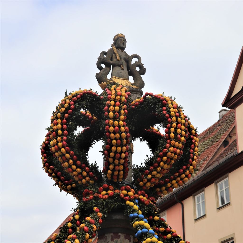 But nothing of these things I have seen during Easter here in Germany.Absolutely life here is different! The only thing that I could share about Easter here (I mean from my own experience…) is all about the Eggs. The wonderful enigma of the hand painted eggs and the delicious deadly world of Chocolate eggs and Osterhase.First they spread eggs all over their places, and it´s not yet enough, they put all these painted eggs up to their fountains and railings. This is what they called “Osterbrunnen“.It is a very old tradition that originally came from Franconia in the 20th century.