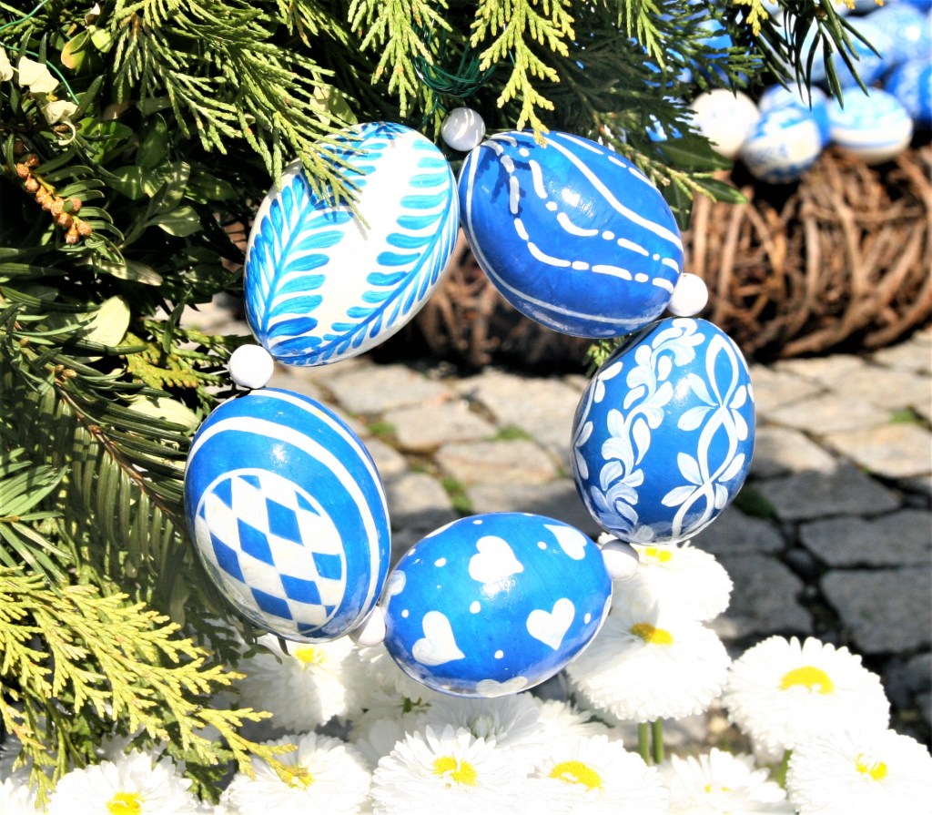 If you follow my Blog, I have posted before about how typical for southern Bavaria to have painted blue & white easter eggs and this one is no exception.Blue and white afterall is the color of Bavaria.If you are curious about how Easter is celebrated here , then you might head on to this post.