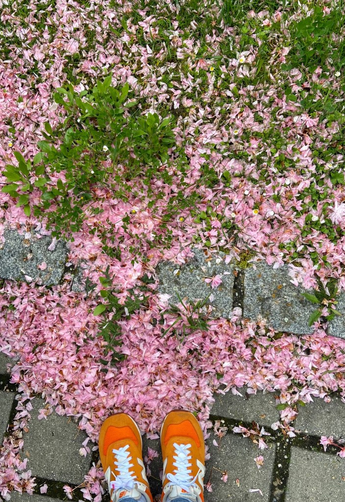 While walking through our street, which is all in pink nowadays because of the pink cherry blossoms, I have this kind of feeling.I don´t care if I am the only one taking photos under these pretty pink flowers—I want to enjoy them now.