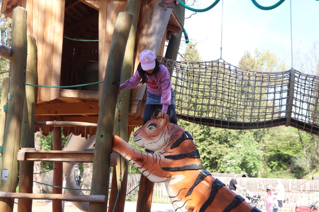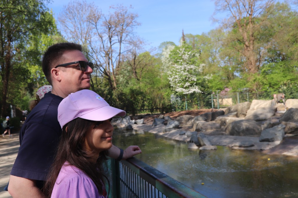 My daughter enjoyed looking out for birds, monkeys and chimpanzees. She got lucky to glimpse the tiger walking beside the fence, but the one that brings us so much fun was watching the Rhinos beating their head off.It was a first time for me to see them up close! We are surrounded by so many birds, we can hear them chirping from every corner. This zoo has the largest number of nests on top of the trees that I have ever seen in my life. It´s really a wonder to see the animals being brought back in the daylight after a long winter and hybernating.