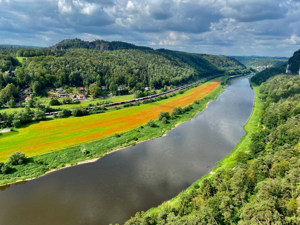 What I also personally enjoyed is the vantage points where I can see the Elbe river with its curve. It was really beautiful and so peaceful. The photo above shows the train tracks and the pretty Poppy Fields.It was a challenging hike because of the crowds but being alone for a few minutes in this point is really worth it.