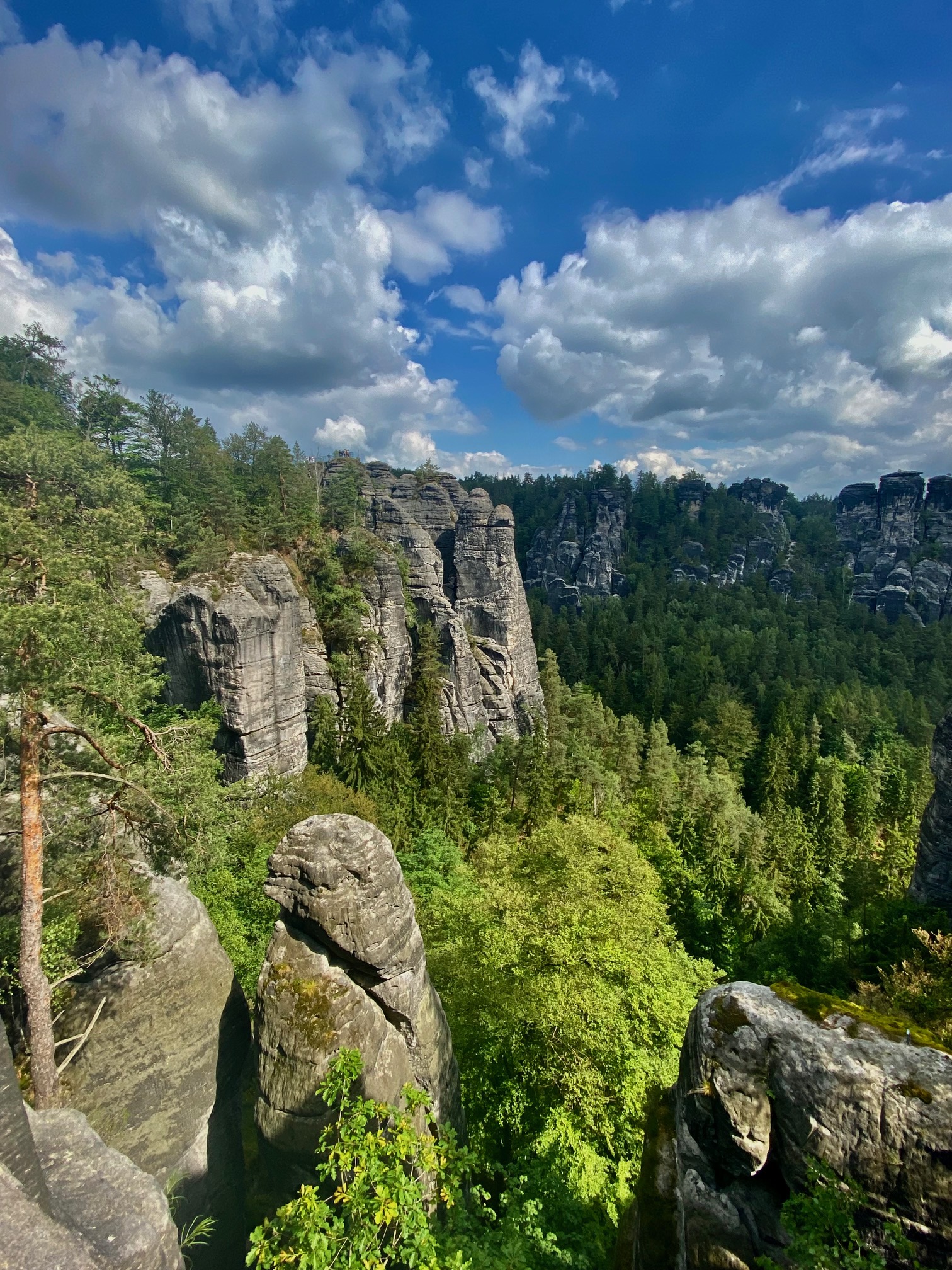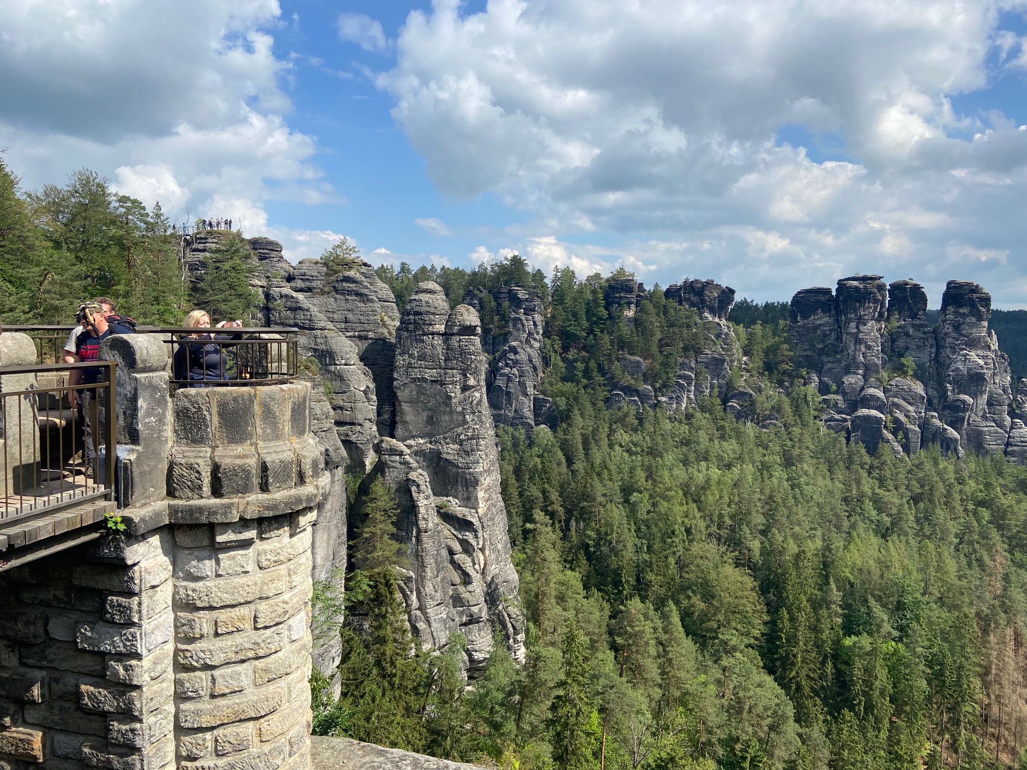 This post is all about our recent hike in the “Bastei ” within the National Park of Lower Saxony-Switzerland (Sächsische Schweiz). I have always dreamed of seeing the Grand Canyon and Petra in Jordan but for now, this had satisfied our travel itch.Someday I would like to hike both of them but now, one of my Wanderlust is done and we are happy we´ve made this trip. I´ve managed to see our German version of it–the Bastei, or also known as Bastion– the hidden gem in the Lower Saxony Mountains in Sächsische Schweiz.The majestic views of splendid towering rock formations surrounded by trees , with the backdrop of the curvaceous Elbe,and just pure bliss really made our hiking adventure unforgettable.