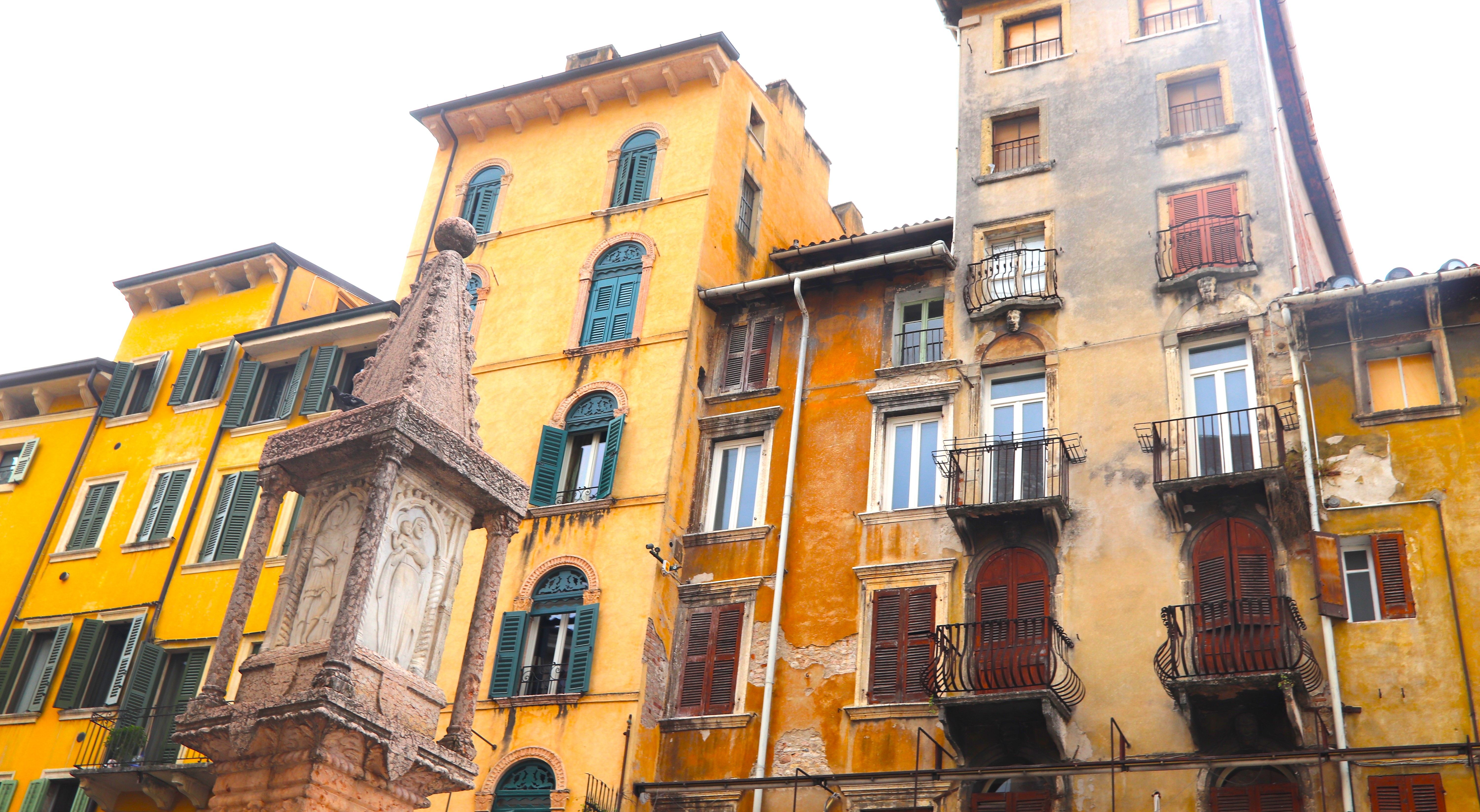 Some parts reminds me so much of Venice, I guess beige and this rust tones are so common in Northern Italy as well.Walking through the large Piazza, (or Square, market place) the Piazza Bra was really wonderful for just having a moment to rest and watch people, admire the facades, and everything. I loved the vibe and the enormously heavy detailed facade of the houses and old buildings.It was rather busy, the cafes and the rows of stalls and shops are so alive. The criwds are eagerly looking for delicious threats and beautiful finds. From the viewpoint in front of the fountain, I managed to admire the walls, there are 4 different sides if I must remember and each one has different character. The windows, the doors, Oh i just love being there!