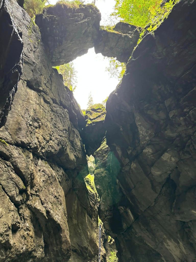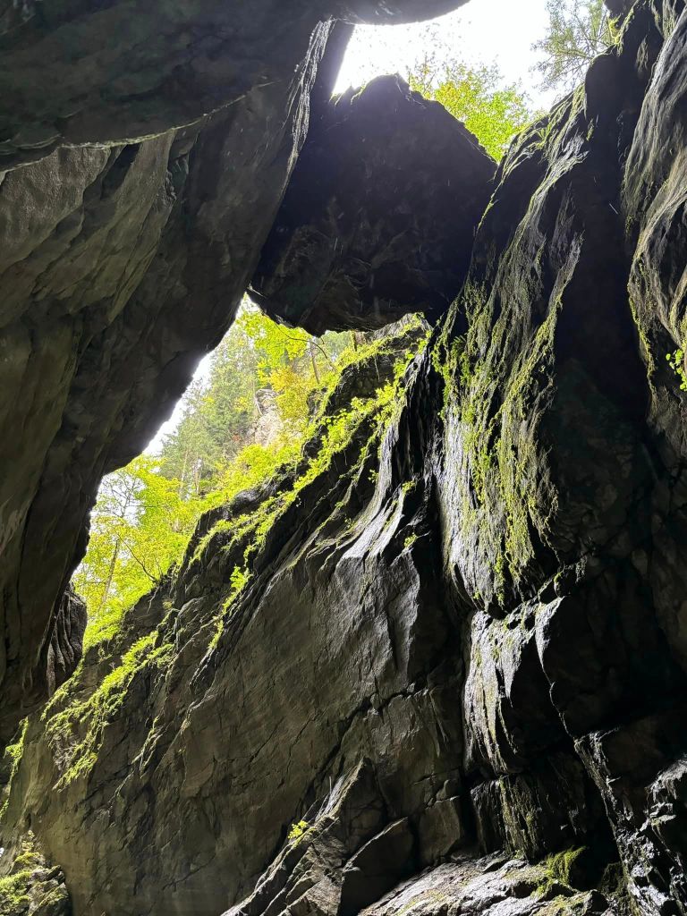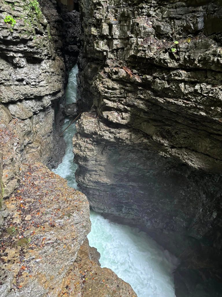 When we started the hike, my steps are grounded and I am taking it slow.All over ,we are surrounded with mountains, rocks , waterfalls, and the river Breitach, it felt great. No, it feels surreal, touching the splitted rock formations with gushing water, knowing that the power of water created this deep rock formation as high as 150 meters (490 ft.) in the past 10,000 years after the Würm ice age.