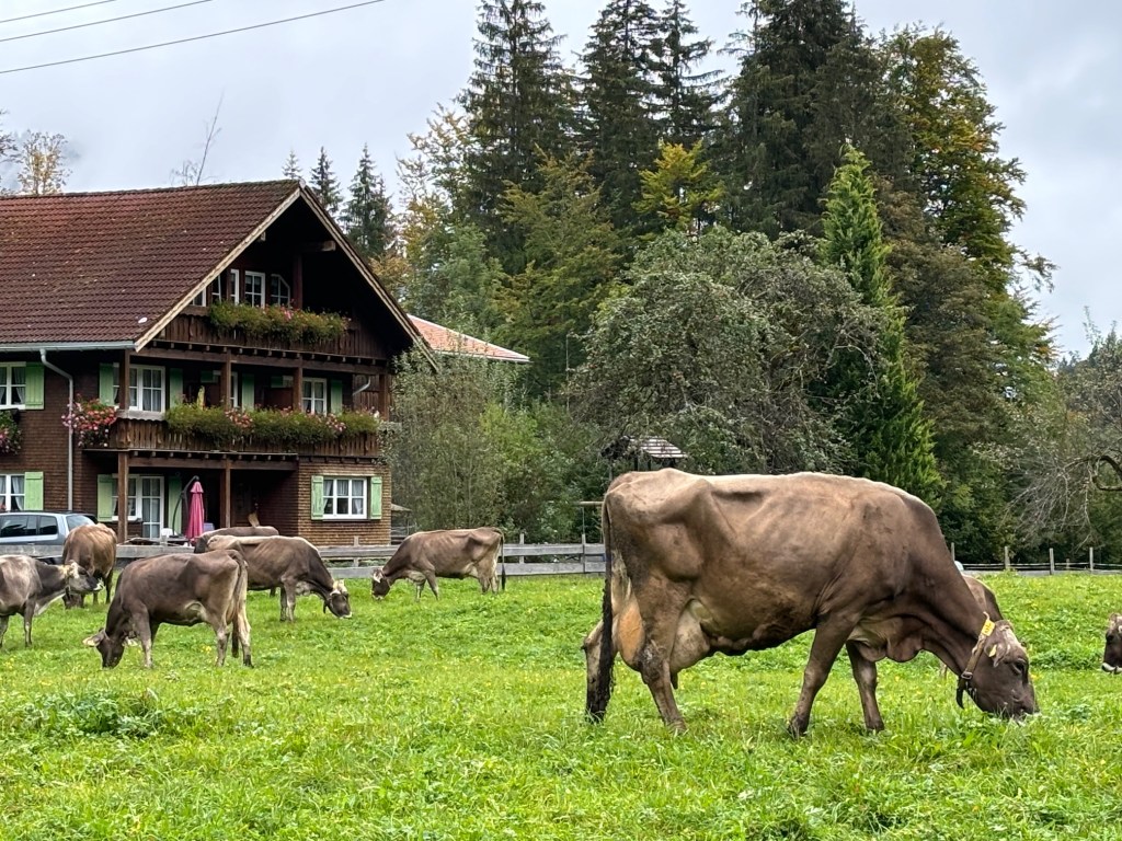 Once we ascended and back to the valley, the parking lot is already full–with campers, busses and eager families and even more nature lovers.We´ve had a share of the wonderful hike in Breitachklamm and brought home happy memories once again.I had a great impression of the village and once again amazed by the Alpine country living here in Allgäu , cows , Huts and all.
