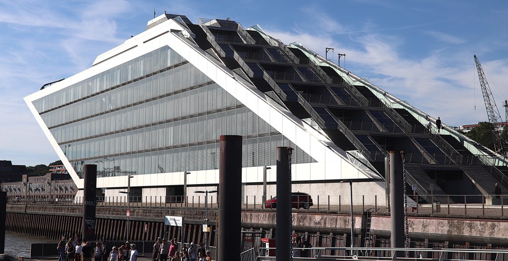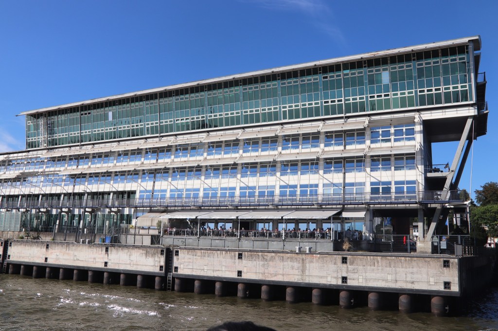 Another favourite of mine was the Dockland-Altona.It´s a strange parallelogram glass structure, totally unique with its 140 steps to the terrace,ship- like eyecatcher lying on the banks of the river that is really interesting.Its actually a prominent business site but it also offers a public viewing platform for visitors and locals.I´ve marveled on this beauty while we are aboard the HADAG ferry takes us to the Fish Market and to the Landungsbrücken vice versa.